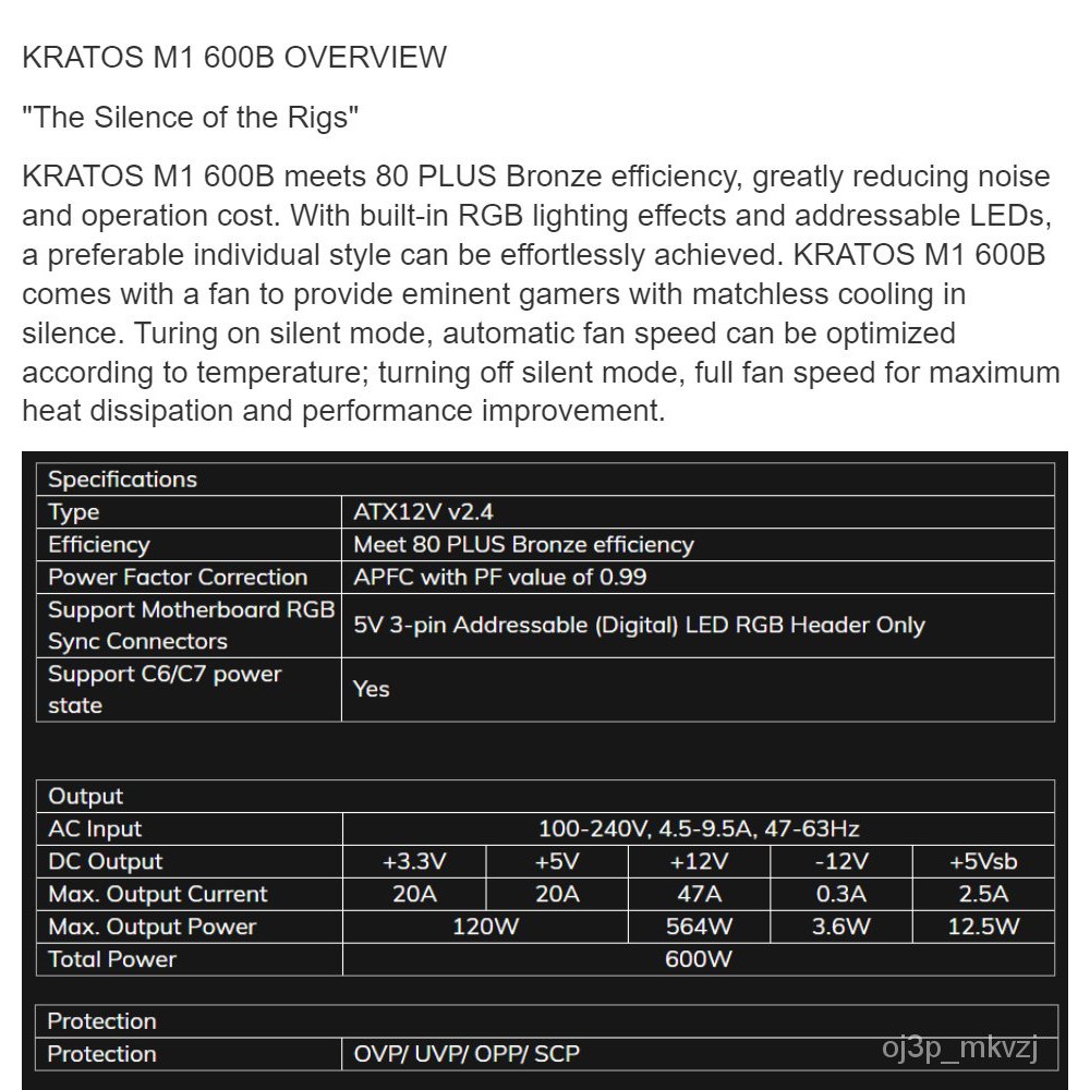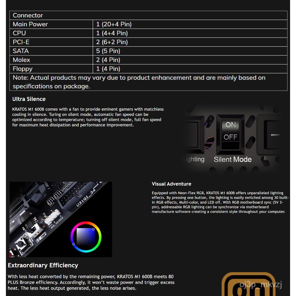 UCw8 GAMDIAS KRATOS M1-600B 600W 80 PLUS Bronze Certified RGB POWER SUPPLY