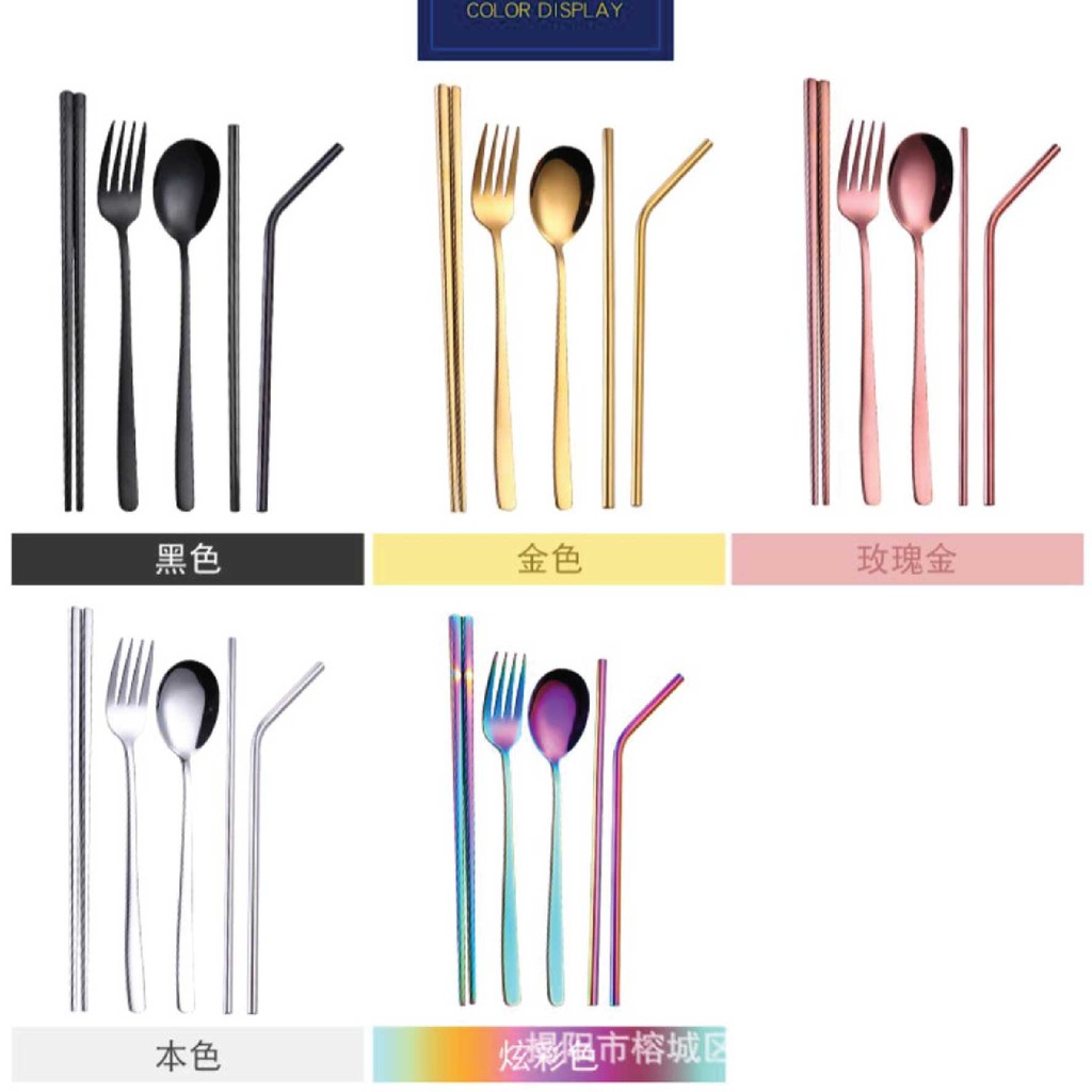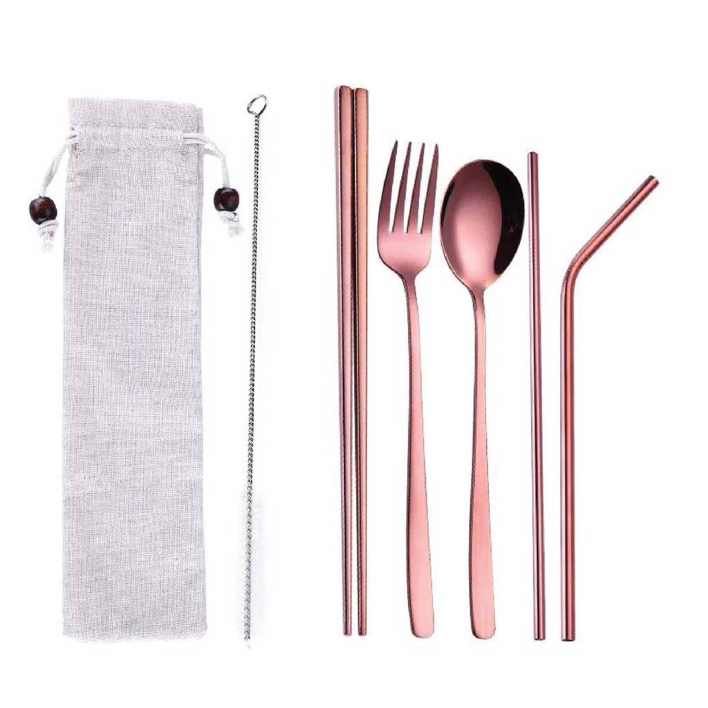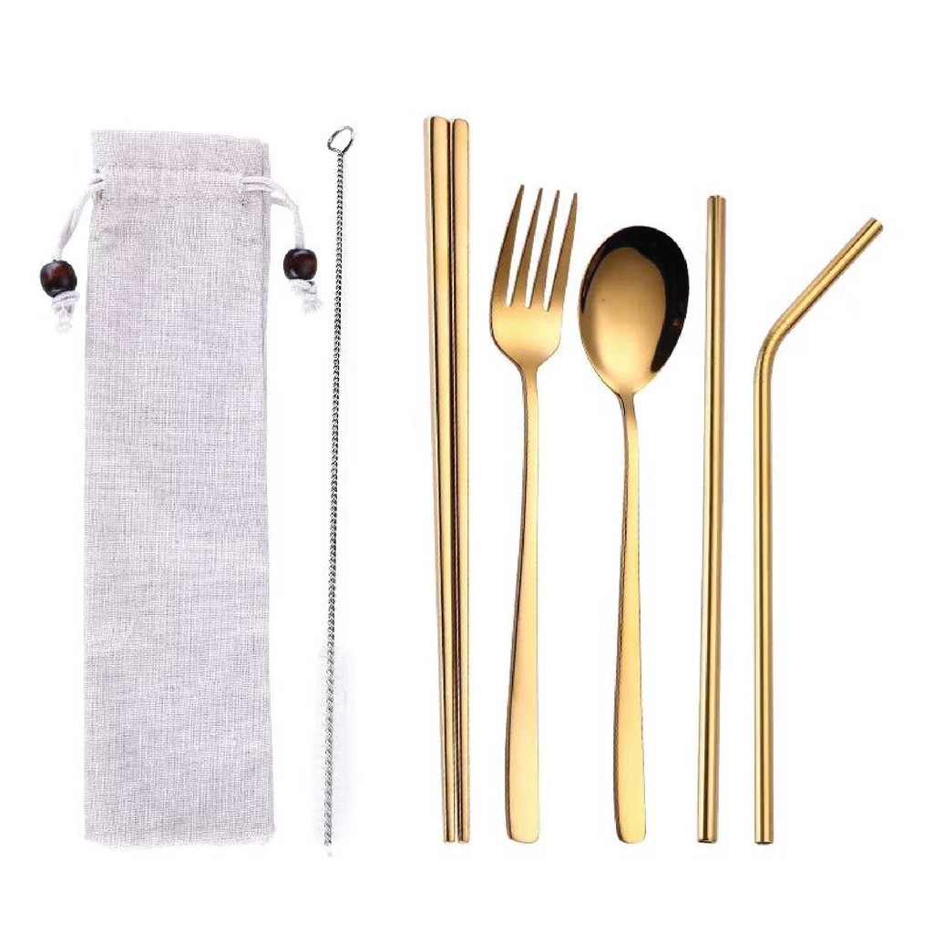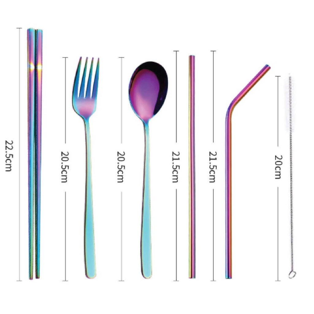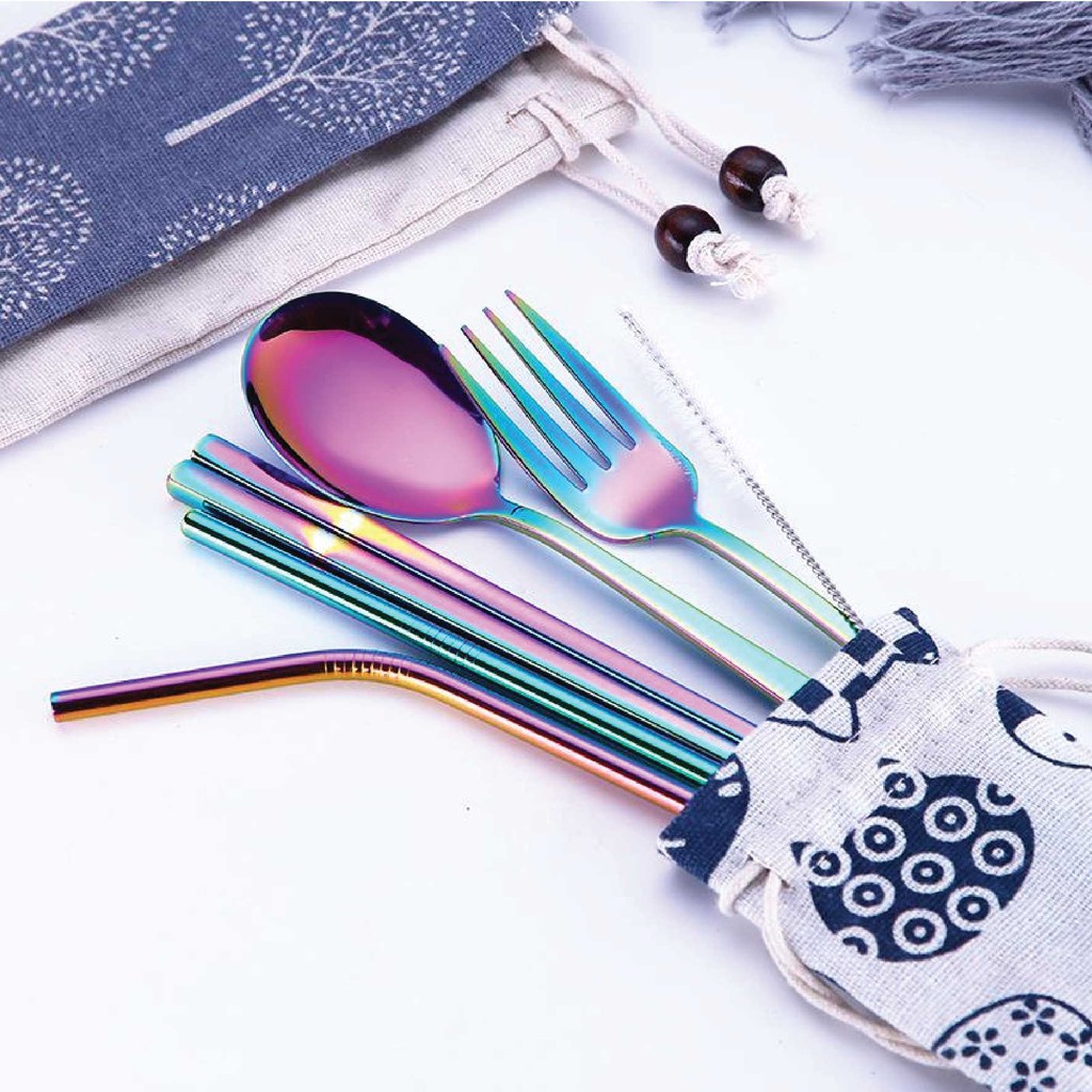 UDC 🍴 304 Stainless Steel Straw 7 In 1 Utensil Spoon Fork Chopstick Straw Set Reusable Metal Cutlery Set/ Set Sudu Makan