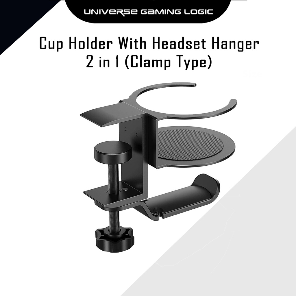 UGL Headset Hanger, Headphone Mount with Drink Cup Holder for Desk and Table Clamp On Type