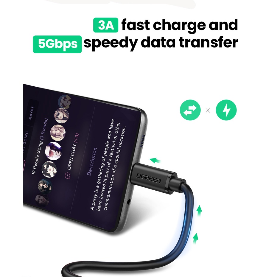 UGREEN 0.5Meter USB C Extension Extend Cable Type C TypeC Type-C Extender Cables Cord Male to Female Thunderbolt 3 0.5M