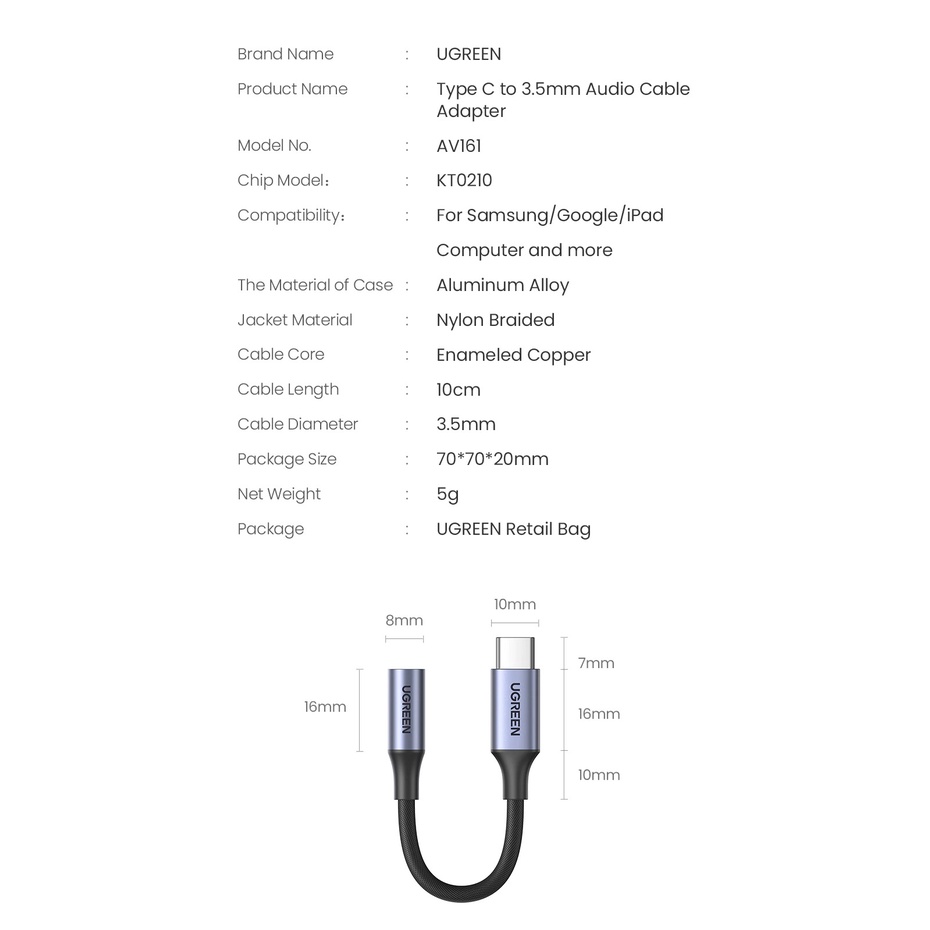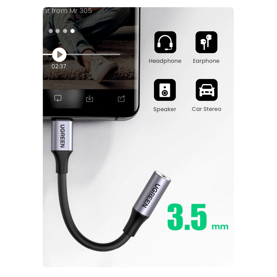 UGREEN 10CM USB C to 3.5mm Audio Jack Adapter with DAC Chip Headphone Audio Jack Adapters for all Type C Device