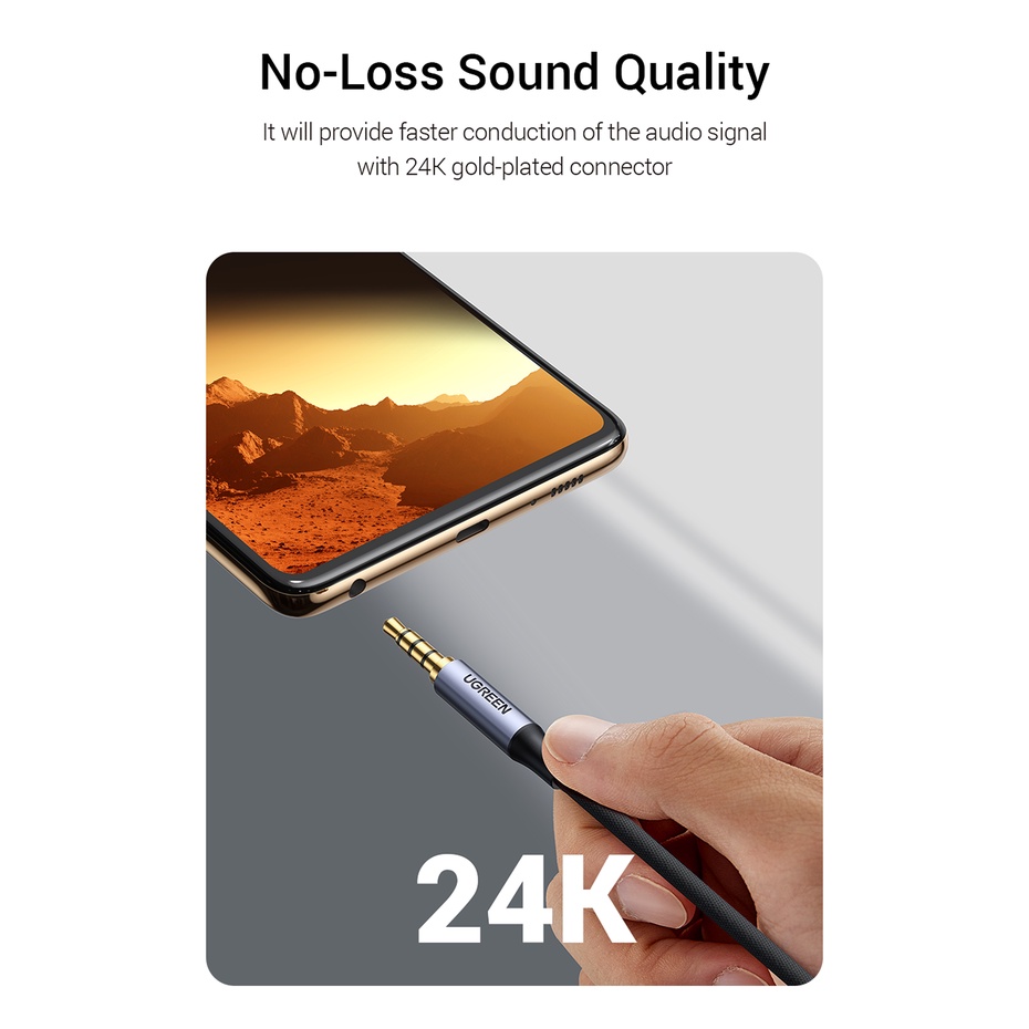 UGREEN 3.5mm Aux Cable 4 Pole TRRS Male to Male Stereo Jack HiFi Mic Audio Laptop Tablet Speaker Samsung TV Headset