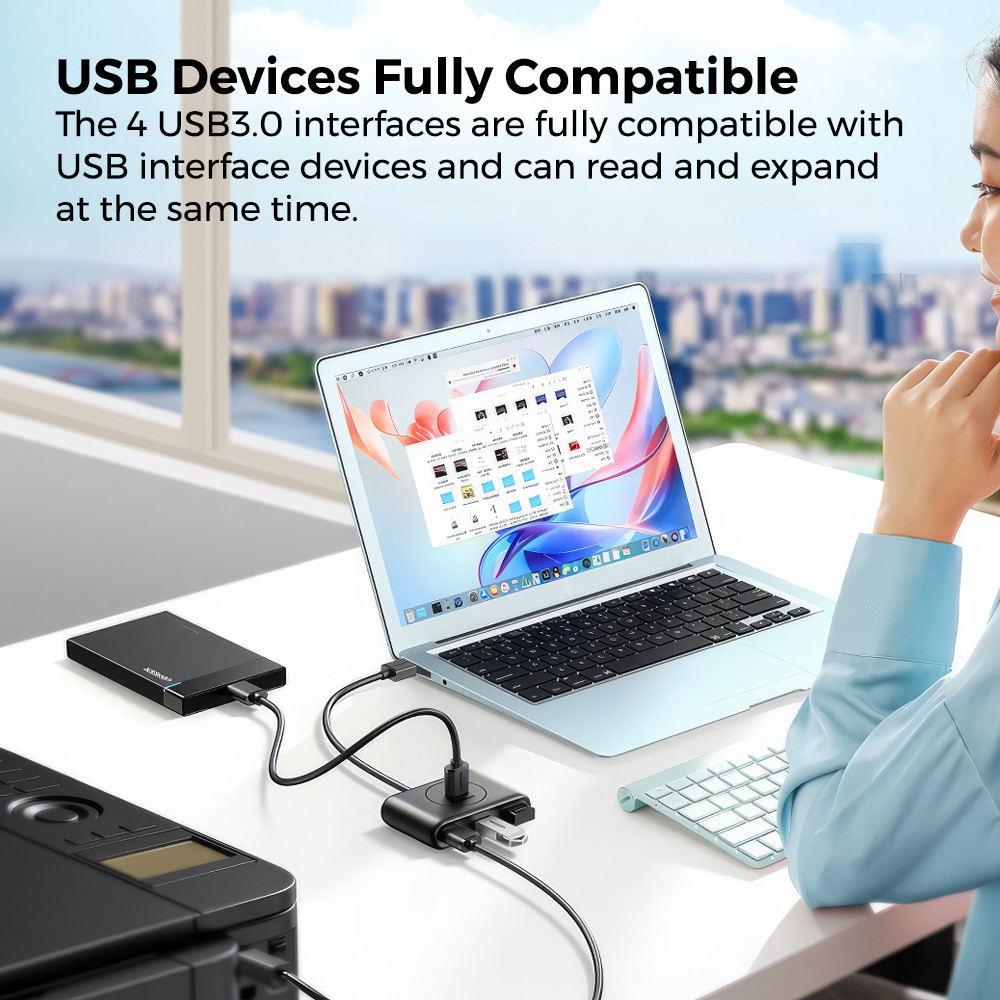 UGREEN 4 USB 3.0 Hub External USB Adapter Converter Splitter with Type C Supply 5Gbps Power Port Macbook Computer Laptop