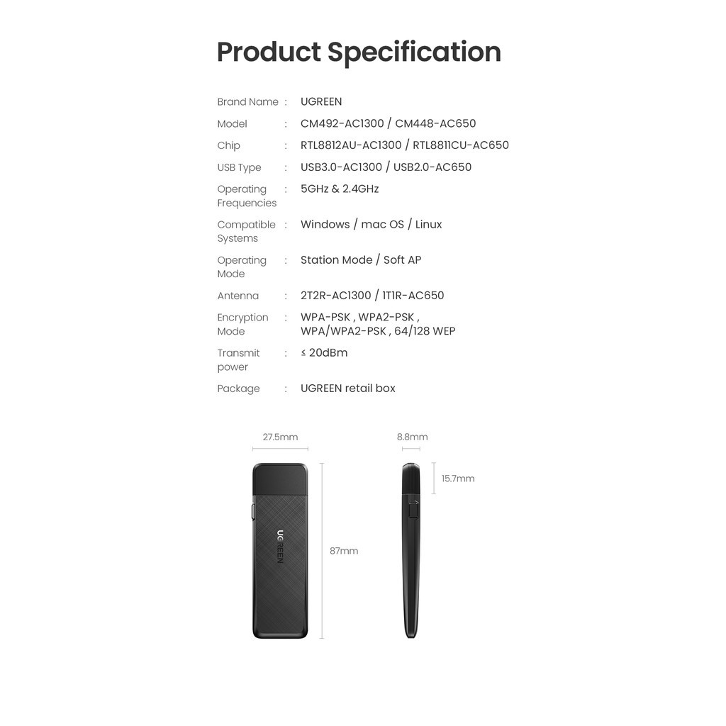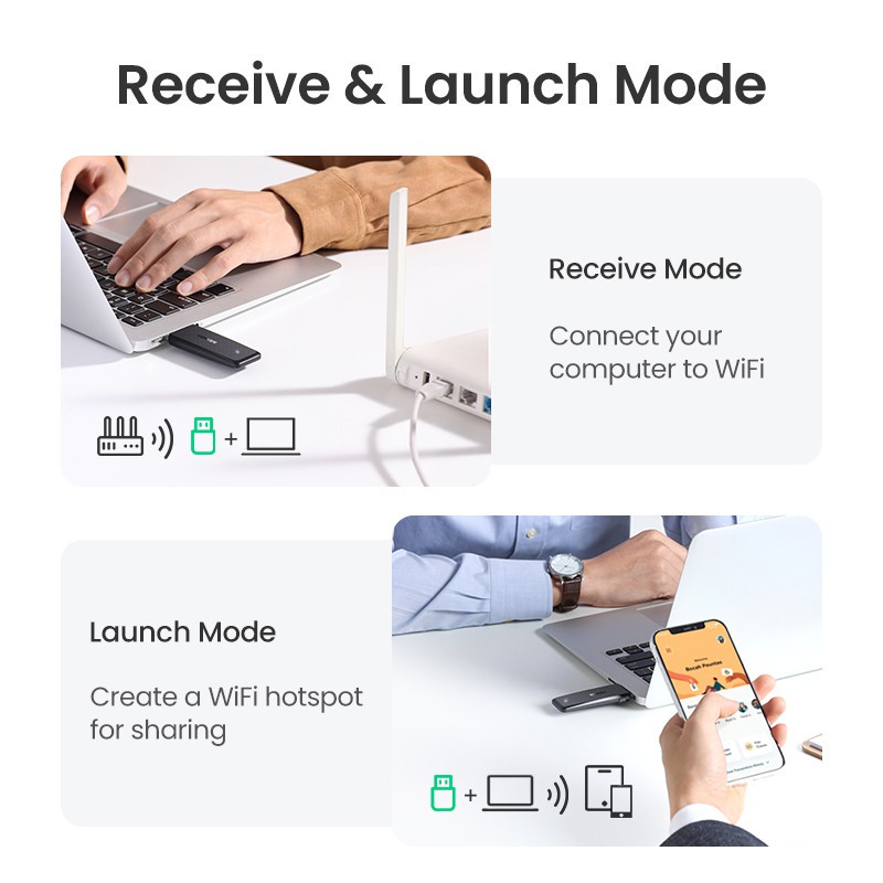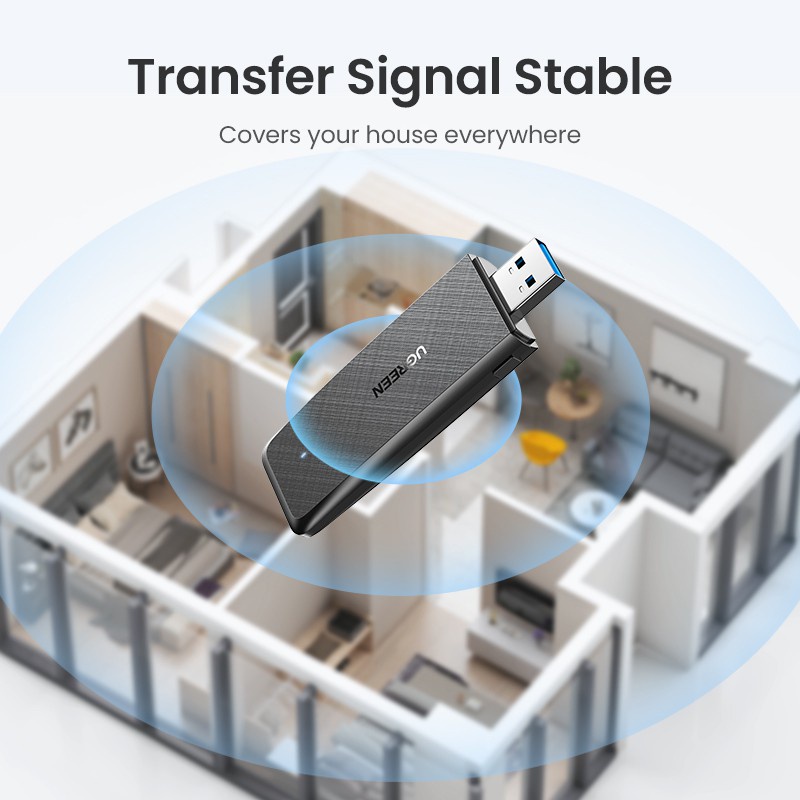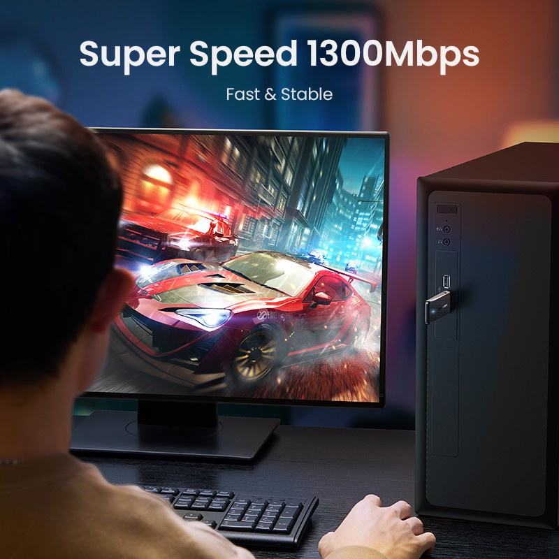 UGREEN AC1300 5Ghz & 2.4GHz USB WiFi Adapter 1300Mbps Wireless Adapter Dual Band WiFi Receiver PC Computer Laptop Dell