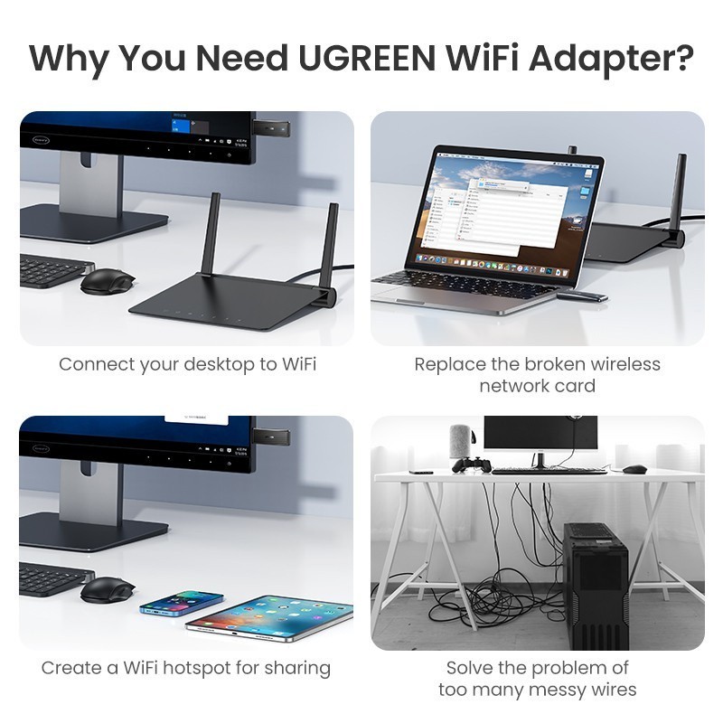UGREEN AC1300 Wifi Adapter Wireless Adapter 1300Mbps 5Ghz 2.4GHz Dual Band USB WiFi Receiver PC Laptop Windows 11 10
