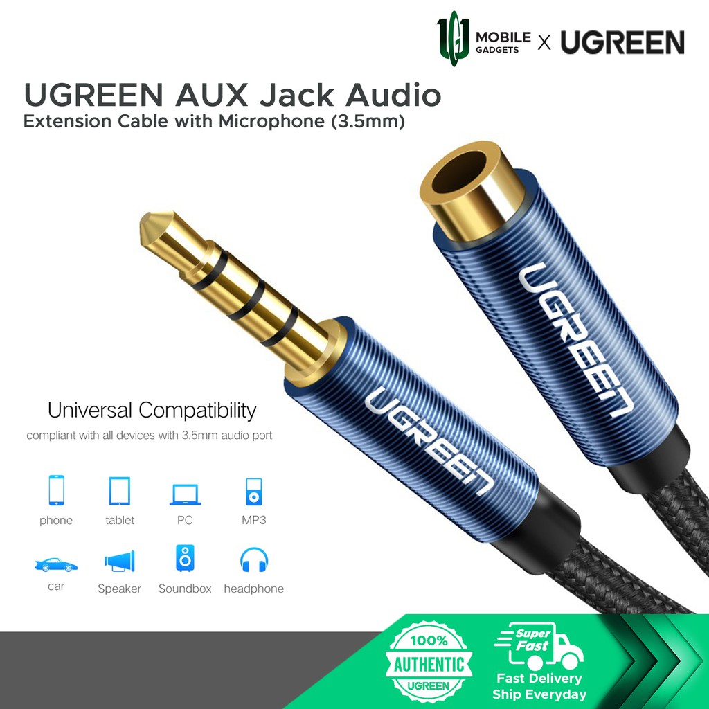 UGREEN AUX Jack Audio Extension Cable with Microphone (3.5mm)