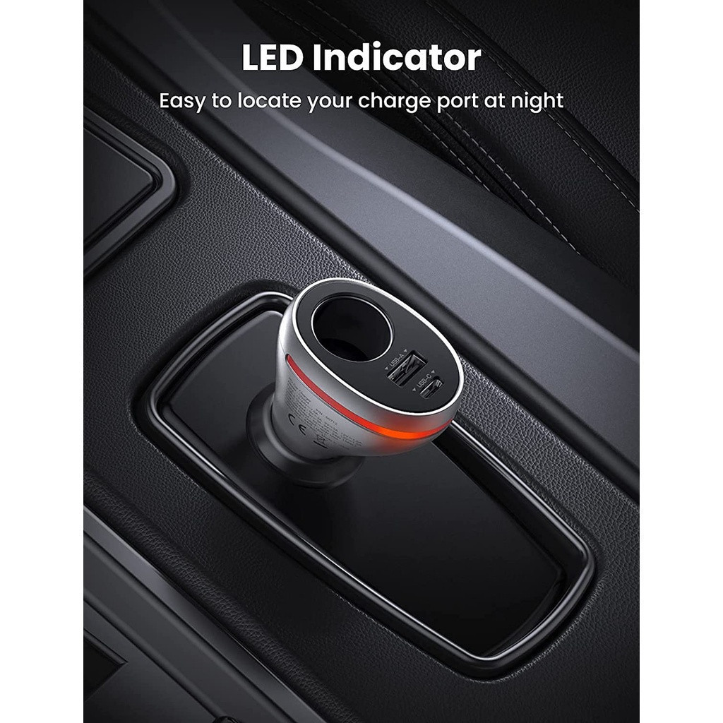 UGREEN Car Charger Splitter USB A Type C Car Adapter Extension Power Outlet PD 20W & QC 18W