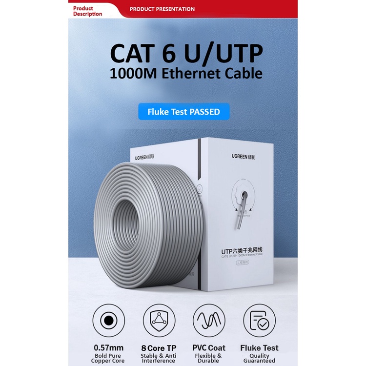 UGREEN Cat 6 Unshielded Engineering Cable 305m U/UTP 1000M Ethernet Cable High Purity copper PVC Coating