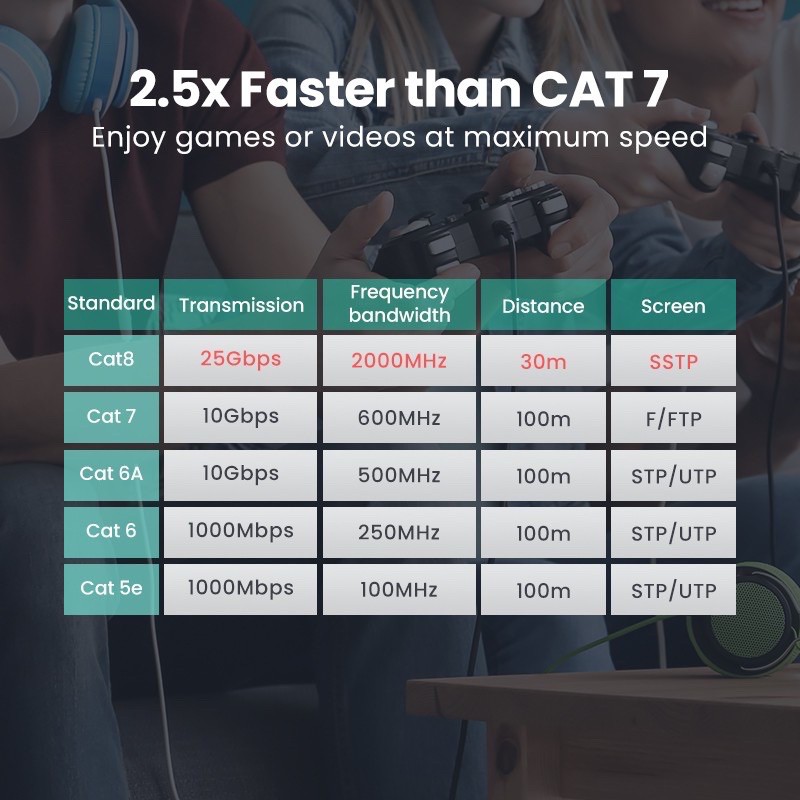 UGREEN Ethernet Cable CAT8 40Gbps 2000MHz CAT 8 Networking Nylon Braided Internet Lan Cord 1 Meter