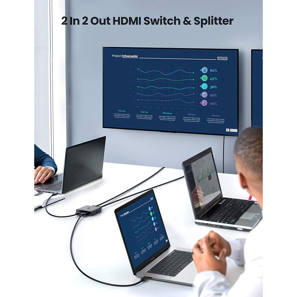 UGREEN HDMI Switcher Splitter HDMI 2 Input 2 Output 4K 60Hz UHD Ultra HD Converter PC Laptop HDTV Projector Windows