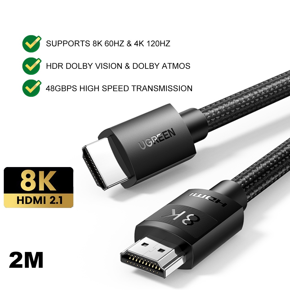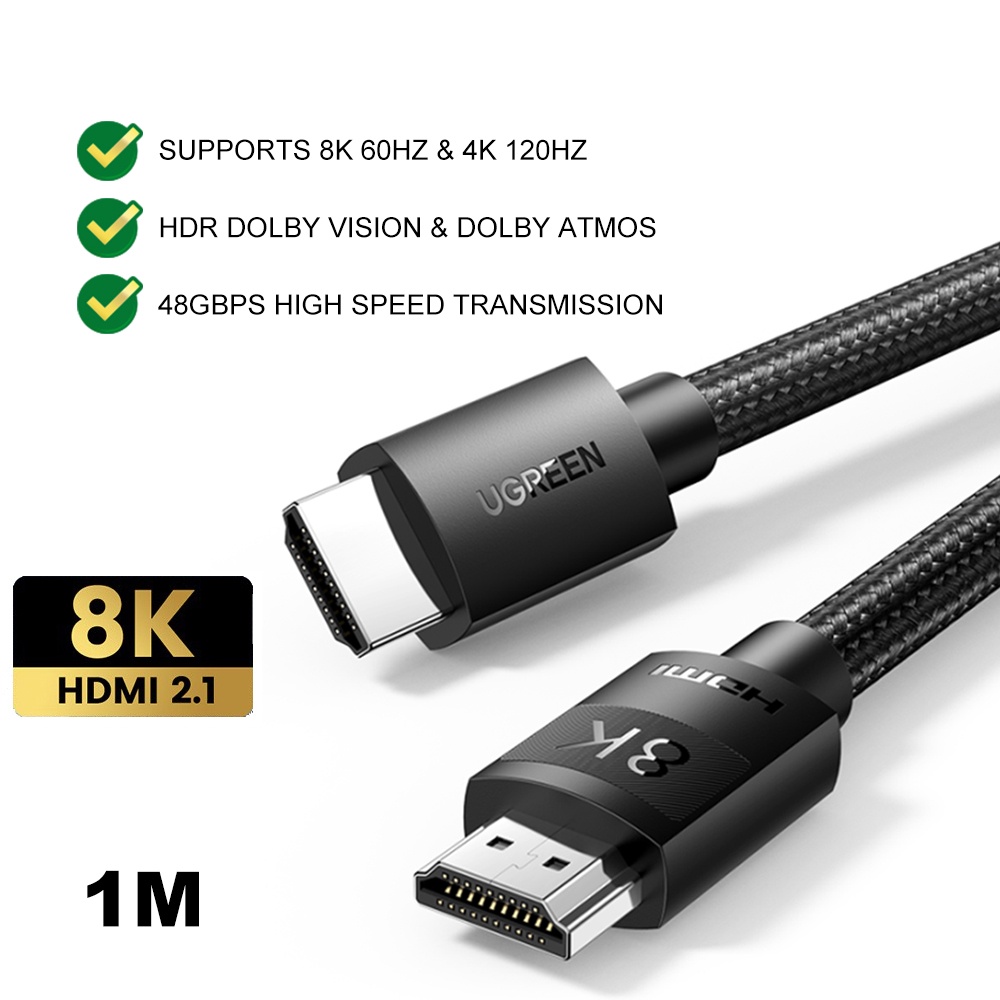 UGREEN HDMI To HDMI 2.1 Cable HDR Vision EARC Dolby Atmos Braided Laptop Monitor Projector (8K/60Hz/4K/120Hz/48Gbps)