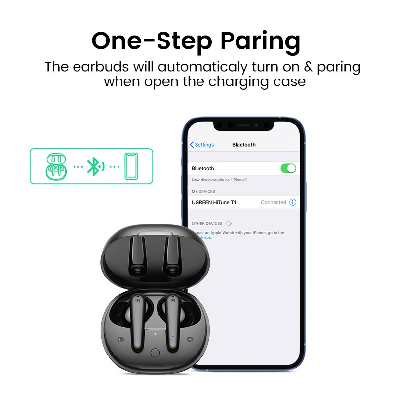 UGREEN HiTune T1 Wireless Earbuds with 4 Mics TWS Bluetooth 5.0 Earphones True Wireless Stereo 24H Play time