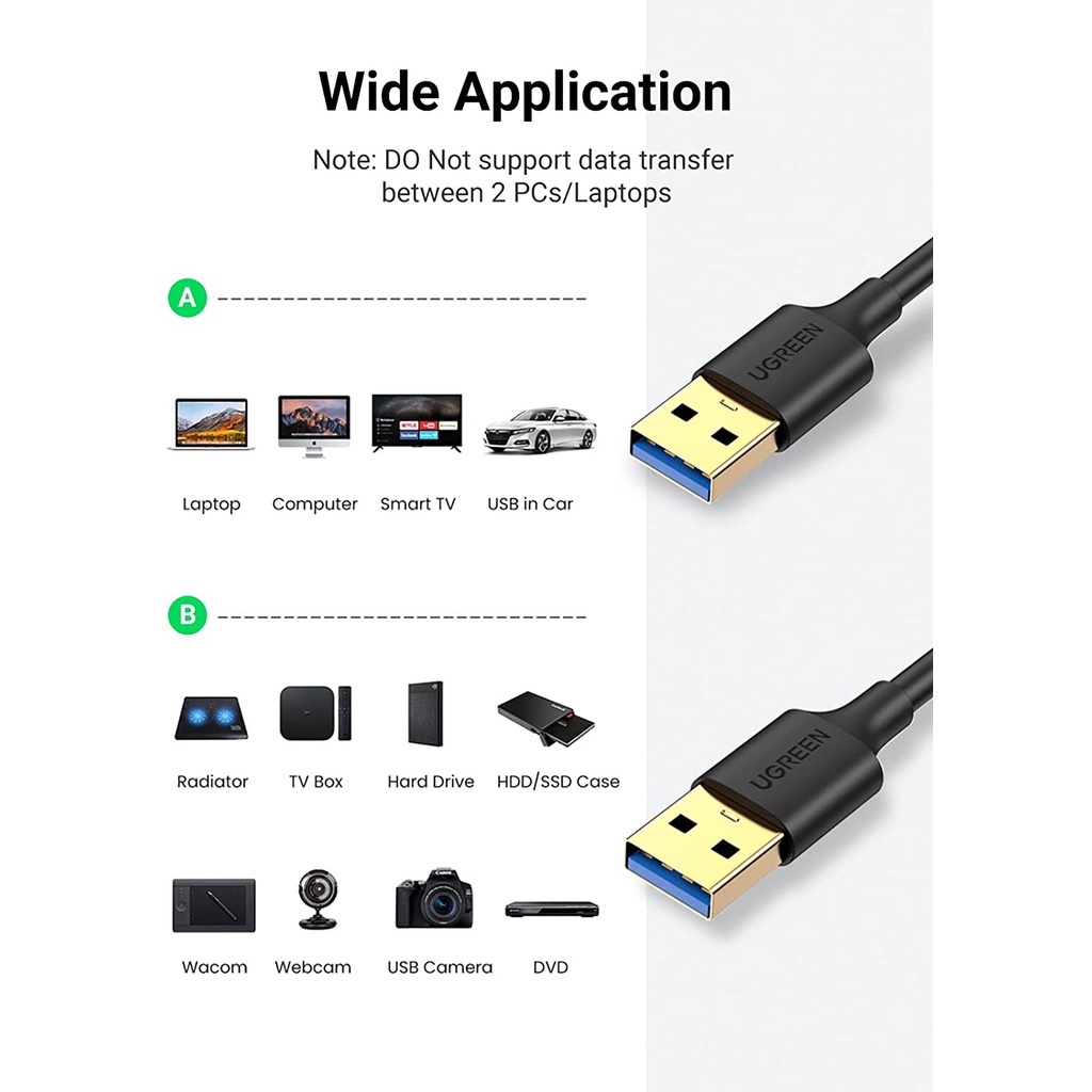 UGREEN Male to Male USB 3.0 Cable USB Cable 3M USB Camera Hard Drive Laptop DVD Player TV Hub Monitor Camera Hard Disk