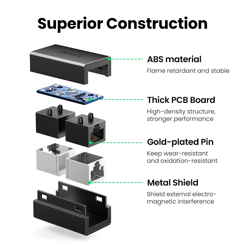 UGREEN New Style RJ45 Connector Network Ethernet Extender Extension for Cat6 Cat5e Ethernet Cable Adapter Gigabit Female to Female