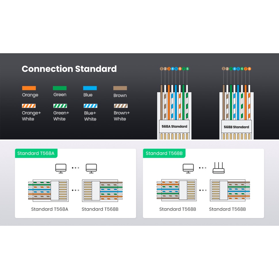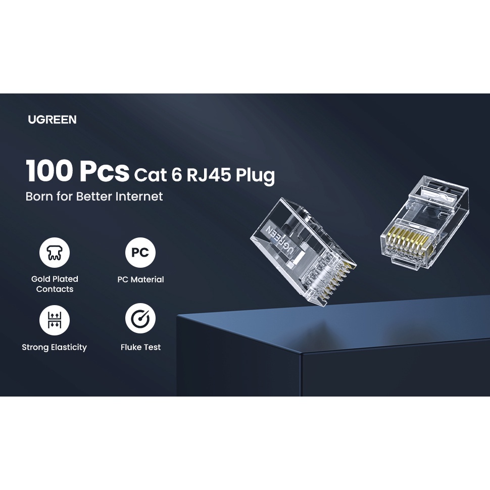 UGREEN RJ45 Connector Cat6 RJ45 Plug Ends Ethernet Cable Crimp Network LAN Connector Crystal Laptop Printer