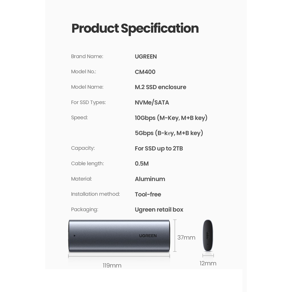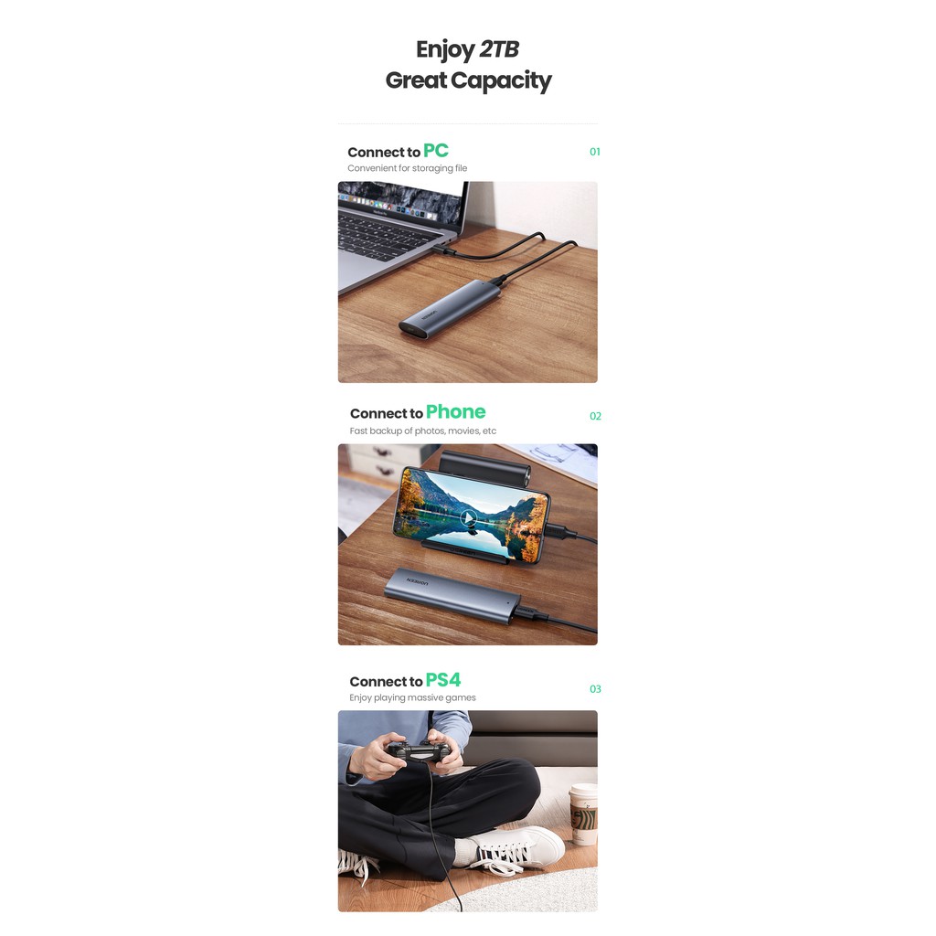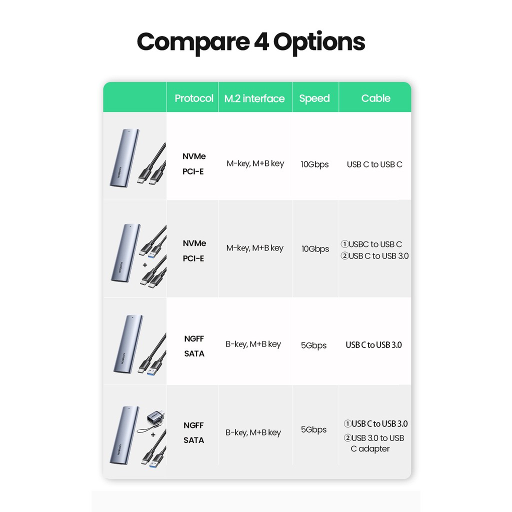 UGREEN SSD Case 10Gbps NVMe M2 SSD Case For PCIe SATA To USB SSD Case for External Hard Drive M-Key & B-Key M2 SSD Case
