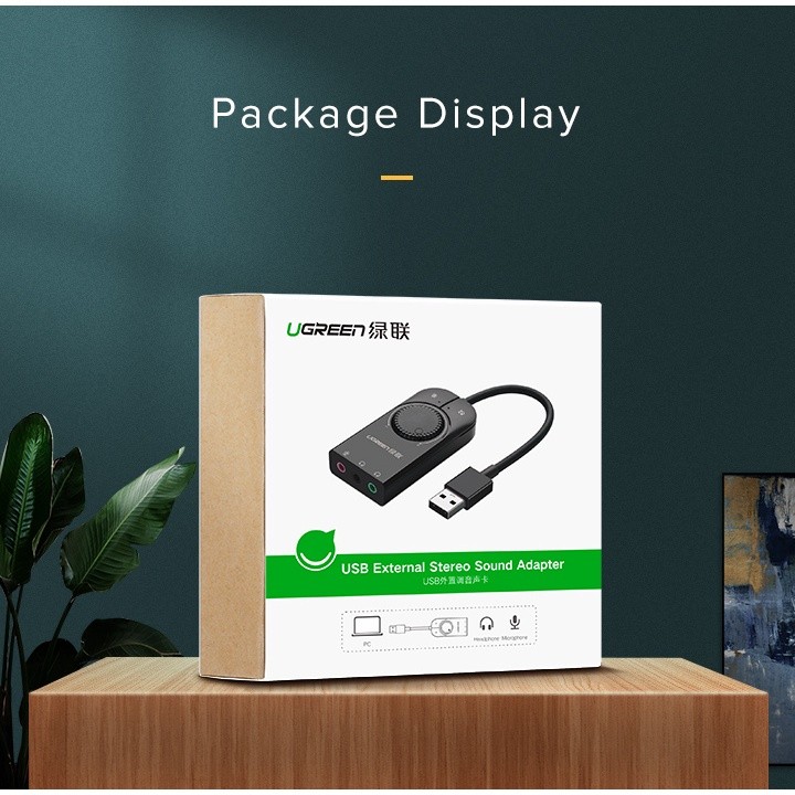 UGREEN Sound Card External USB Stereo Audio Card Adapter USB to Jack 3.5mm Earphone Headphone Microphone Laptop PS4 PC