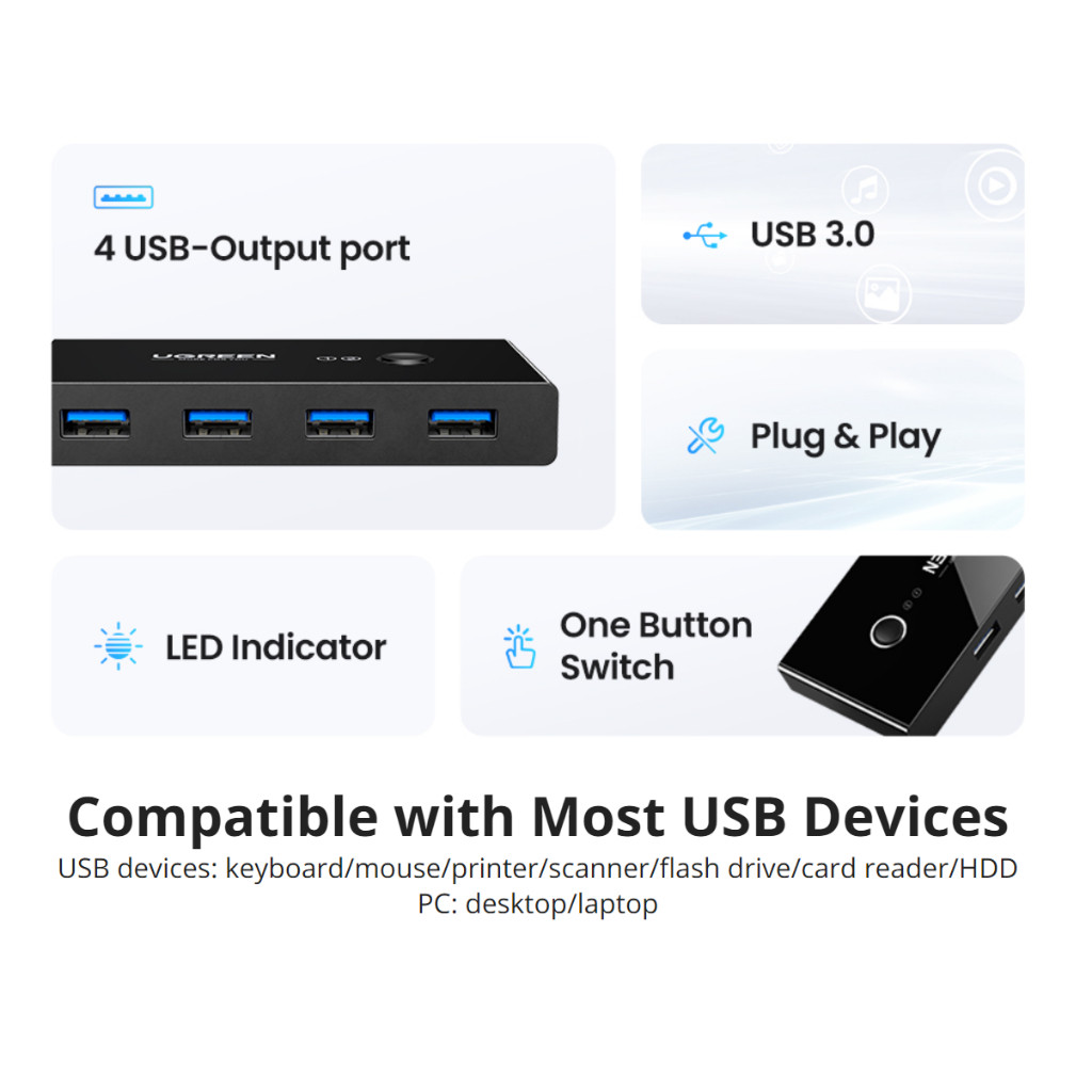 UGREEN US216 2 In 4 Out USB 3.0 Sharing Switch Box Kvm Switcher With Touch Butoon Switch & Led Indicator UG-US216-30768