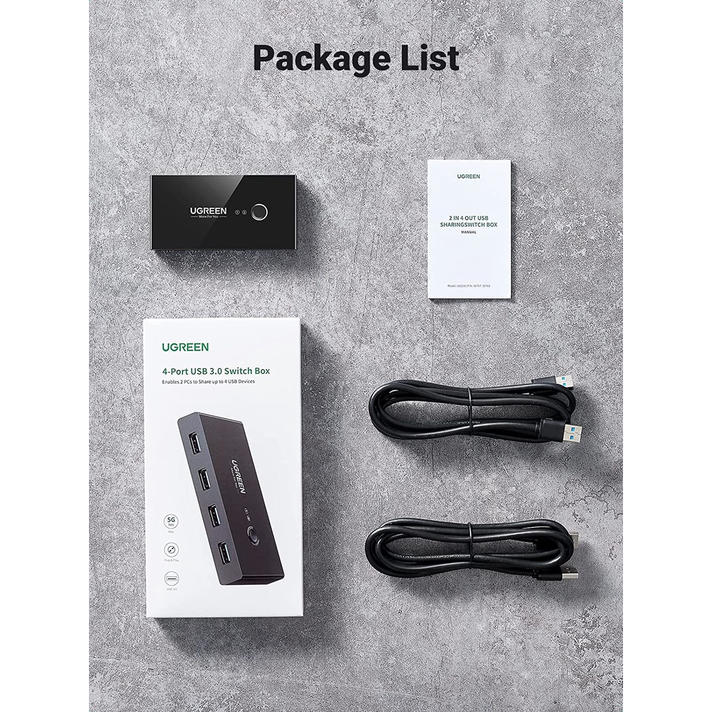 UGREEN USB 3.0 Switch Selector 4 Port 2 Computer Switcher Adapter Hub for PC Printer Scanner Mouse Keyboard Switcher