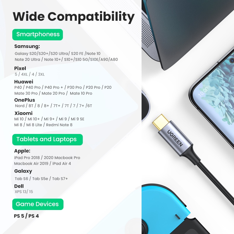 UGREEN USB C To 2 RCA Audio Converter Cable DAC Chip Type C to 2RCA Converter Cable S22 Plus Note 20 P50
