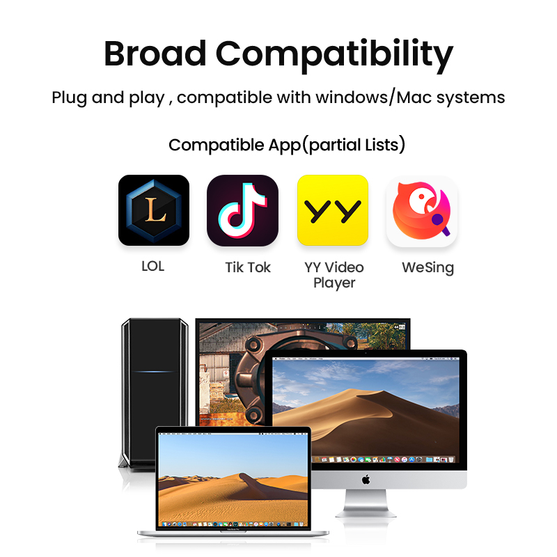 UGREEN USB Desktop Microphone Computer Desktop 60dB Noise Reduction Live Microphone Game Online Class Meeting Recording USB External Mic