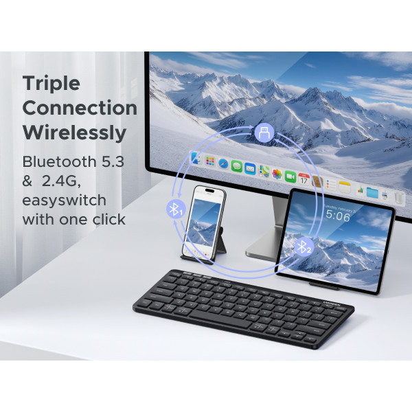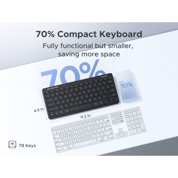 UGREEN Wireless Mini Keyboard Bluetooth 5.3 & 2.4G USB Dongle 78 Keys Ergonomic Silent Clicks Laptop PC iPad Pro Tablet
