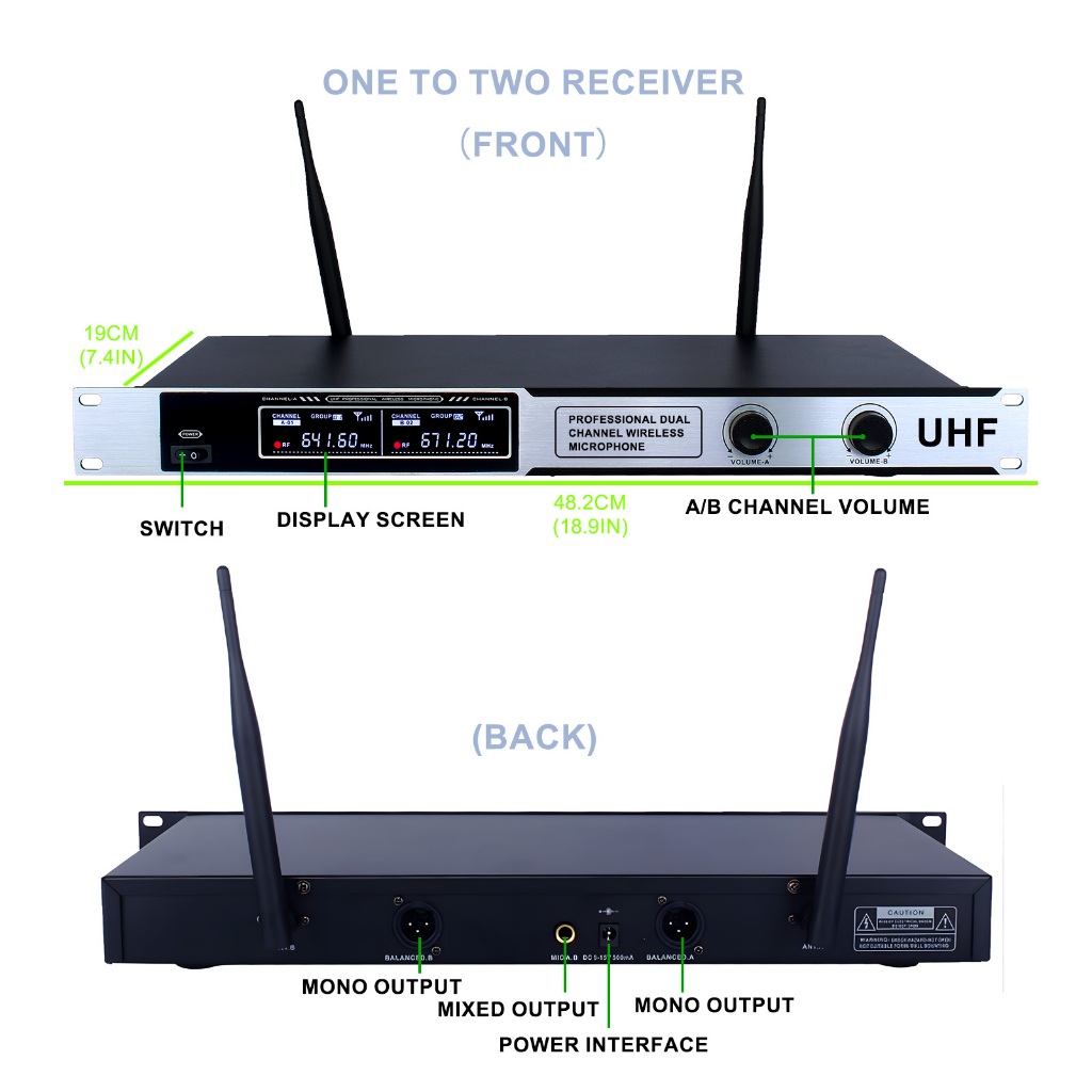 UHF 2 Channel Wireless Headset Microphone System For Speech Karaoke Party Stage Performance Singer