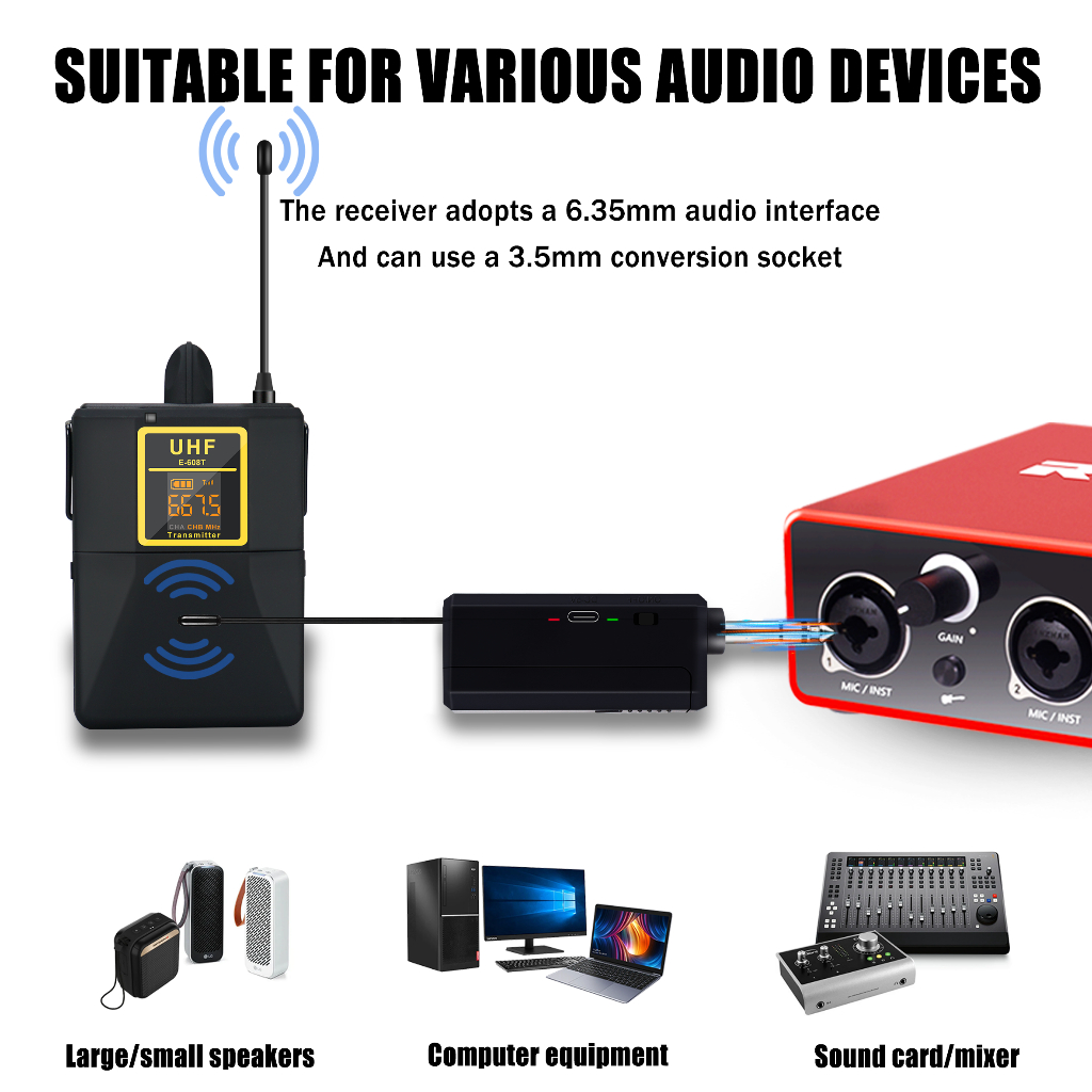 UHF Wireless Microphone Headset with Transmitter and Receiver, LED Digital Display Bodypack Transmitter Headset Mic