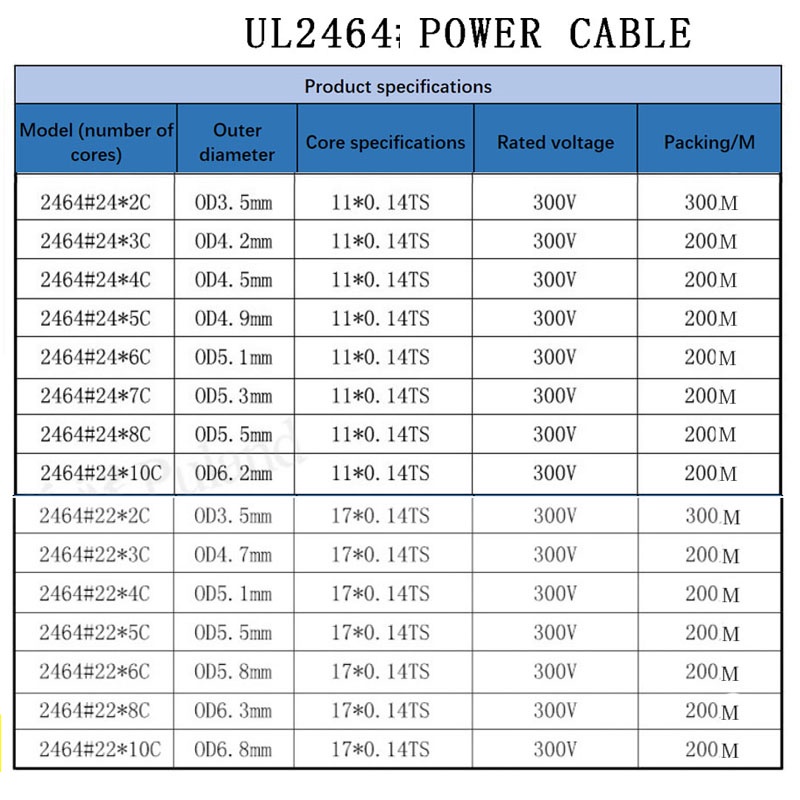 UL2464-16/18/20/22/24AWG multi-core sheathed power cord,black electronic wire 2/3/4/6/7/8/9/10 core signal control line