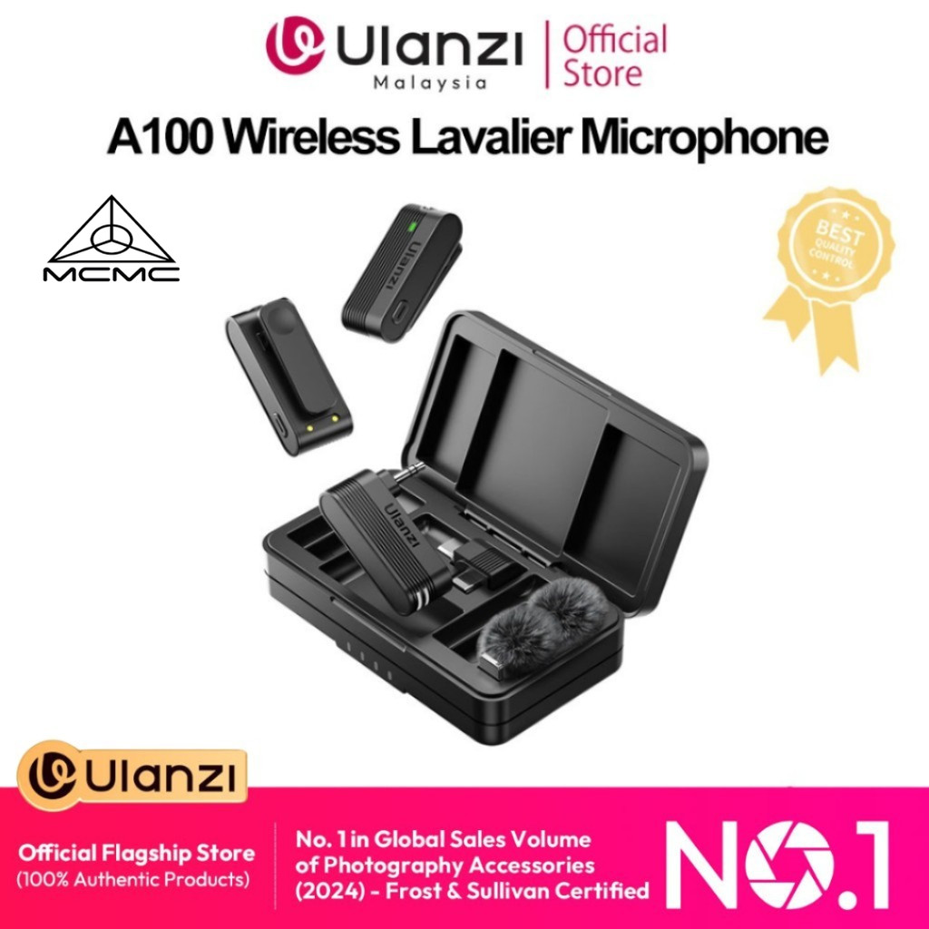 ULANZI A100 Wireless Lavalier Microphone Lapel Mic for Camera and Phone (NOT INCLUDED LIGHTNING ADAPTER) [MCMC APPROVED]
