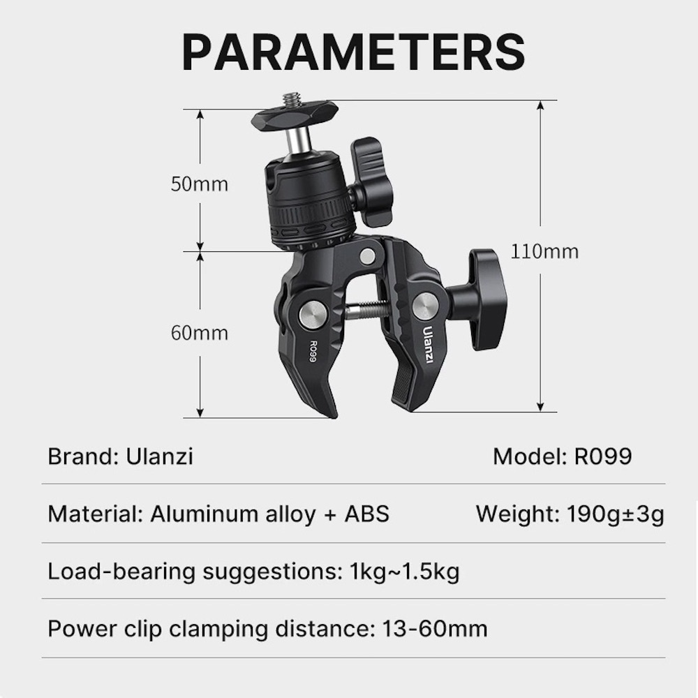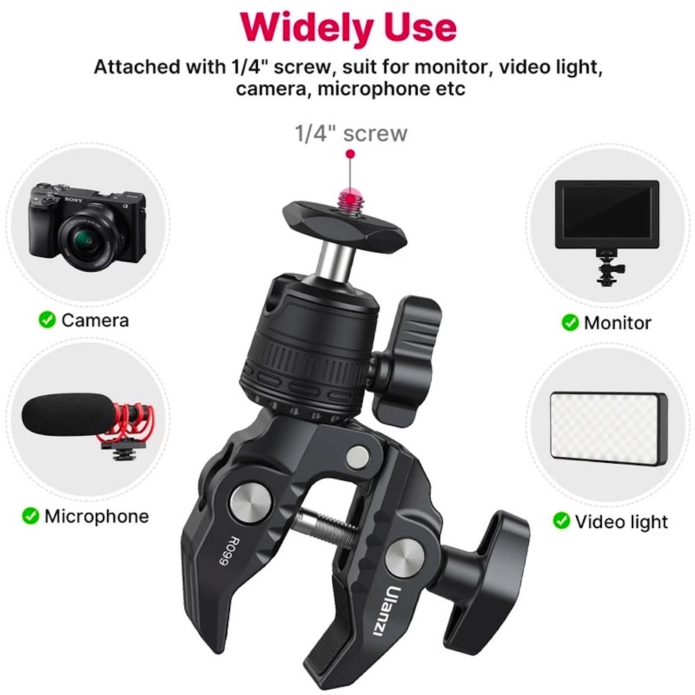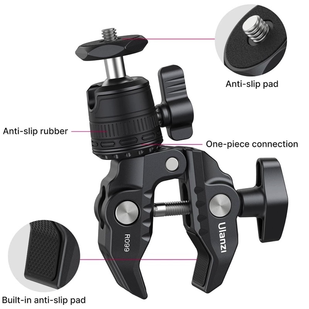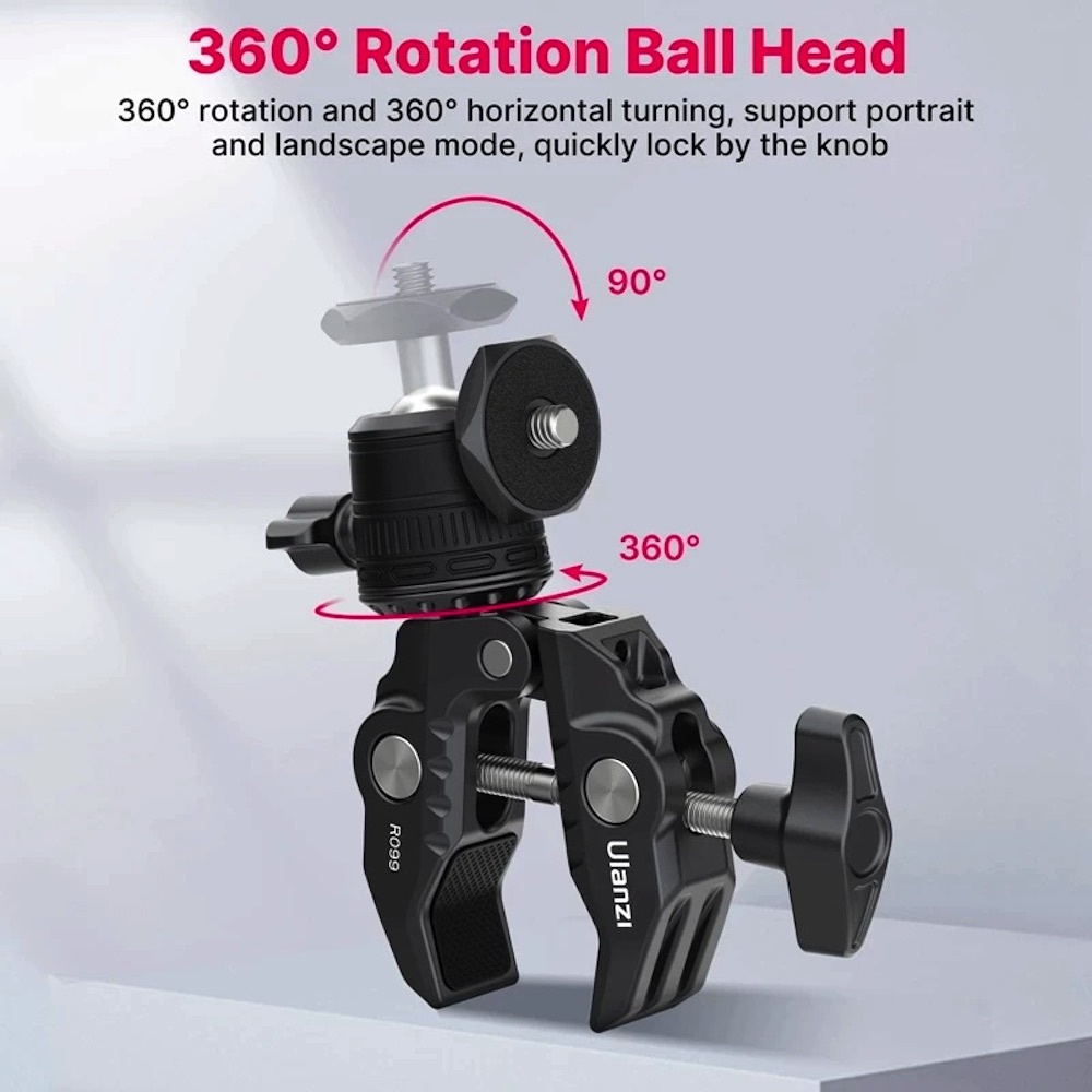 ULANZI R099 Super Clamp 360 Ball Head Handlebar Motorcycle Bicycle Bike Mount for DSLR GoPro Insta360 DJI Action Camera