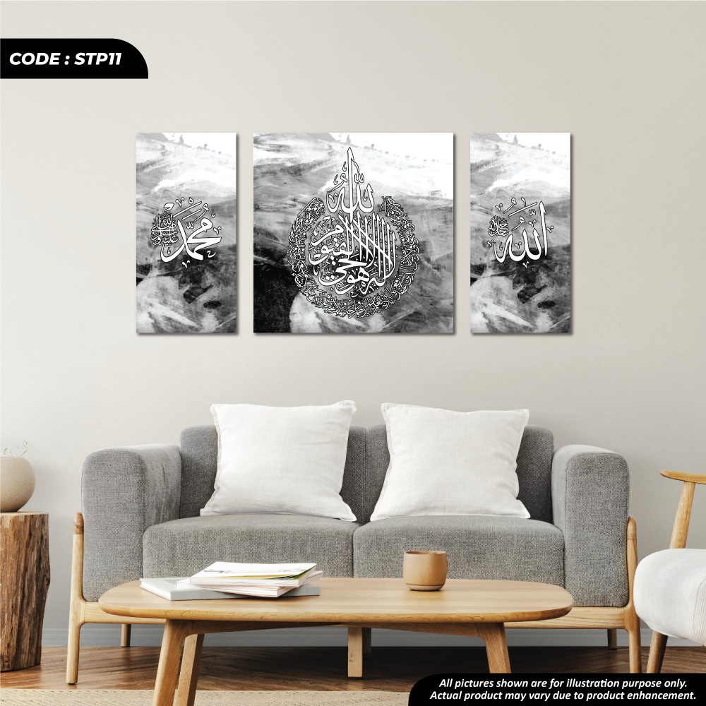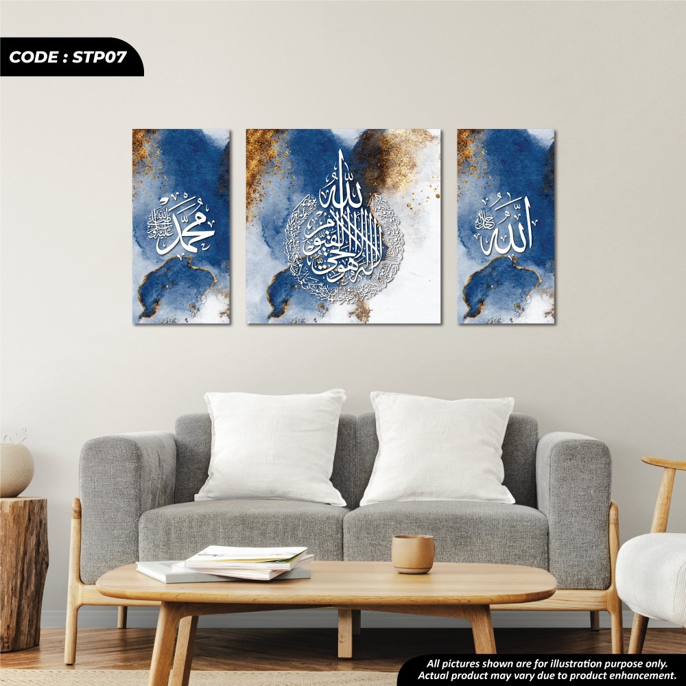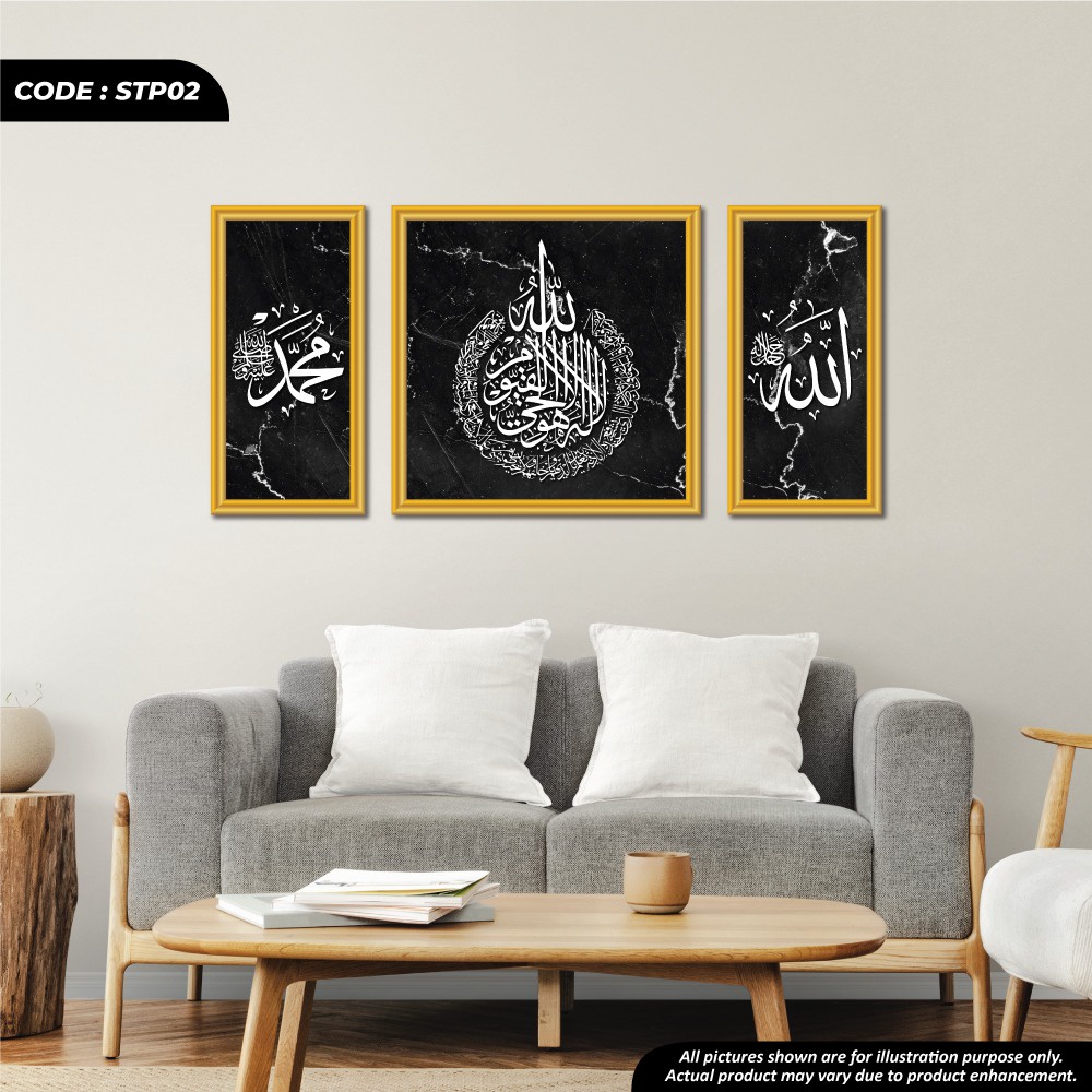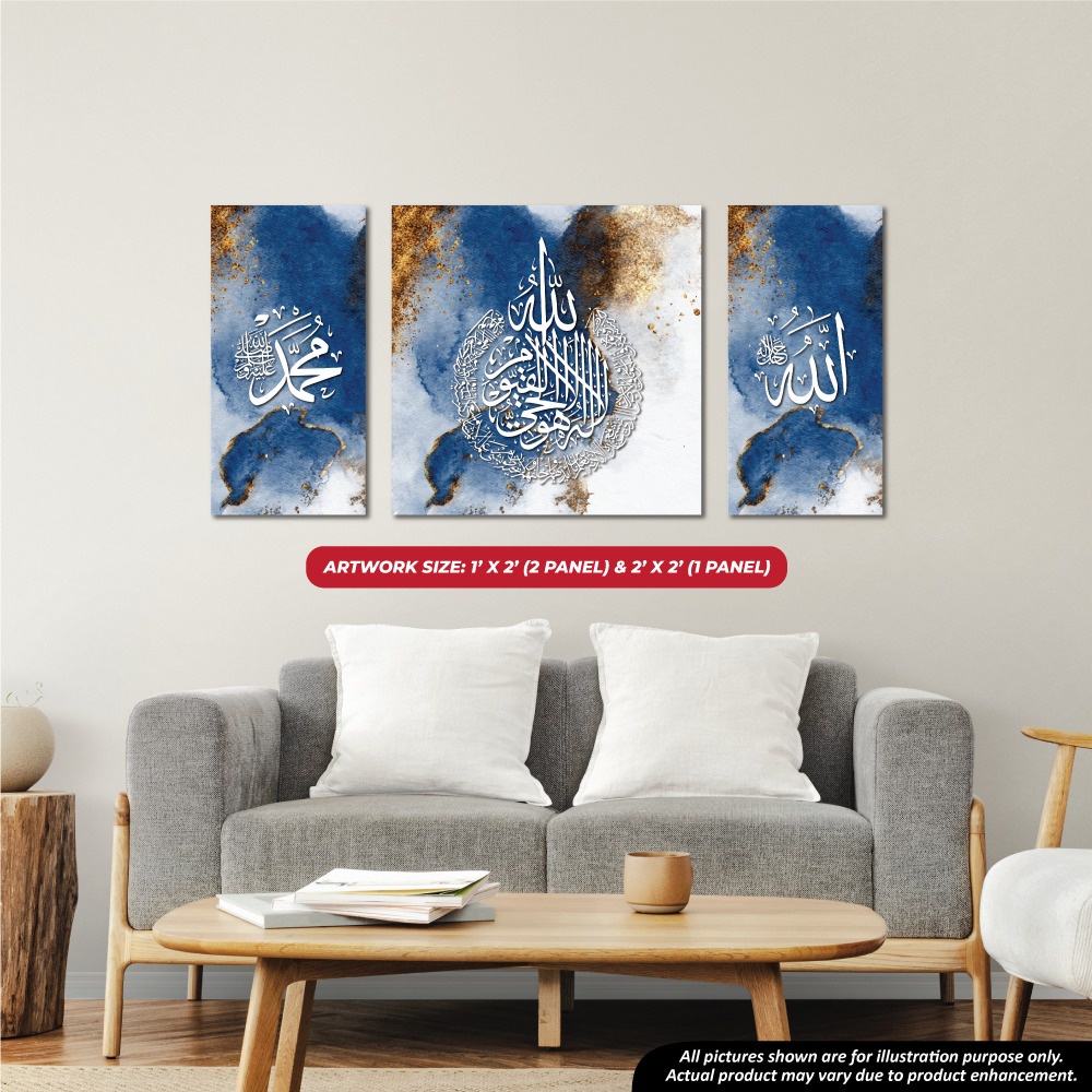 ULTIMATE SIGNATURE FRAME KHAT AYAT KURSI | ALLAH MUHAMMAD |1 SET 3 FRAME |KHAT KUFI KALIGRAFI ISLAMIK |WALL ART CANVAS