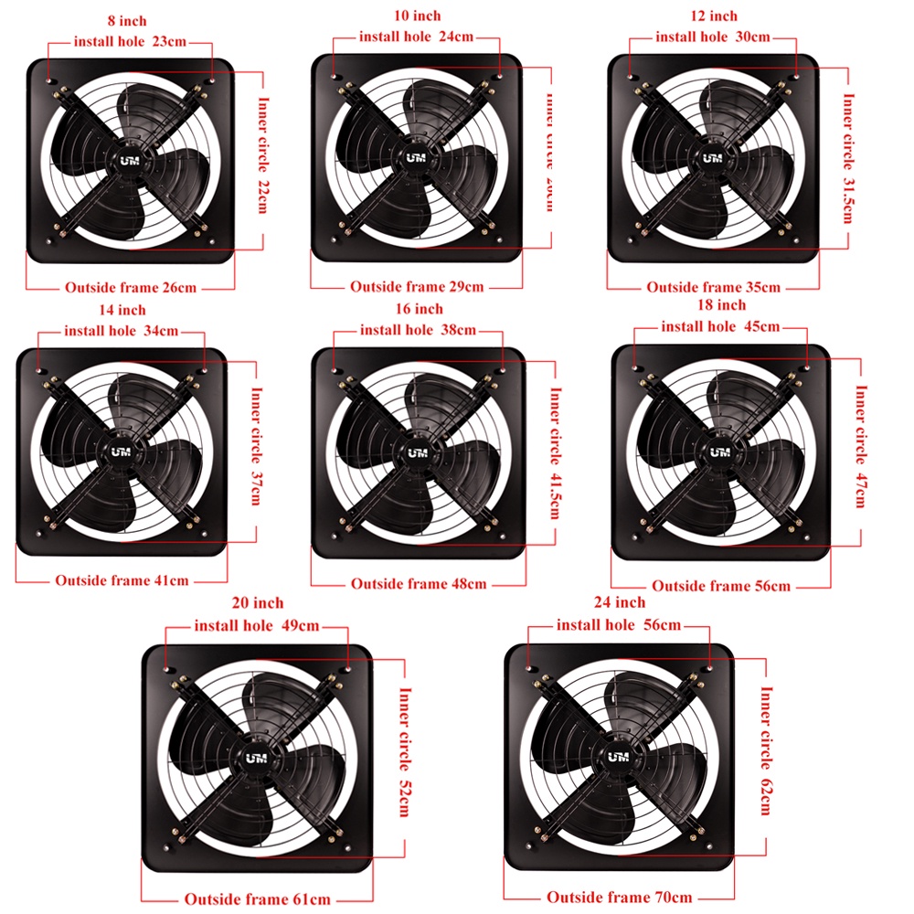 UM 8-24 inch Industrial exhaust fan ventilation fan kipas ekzos