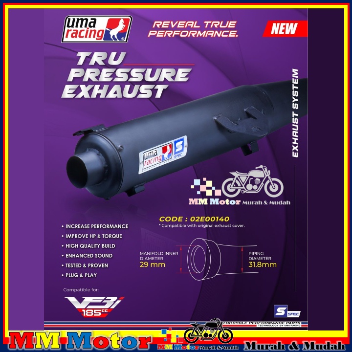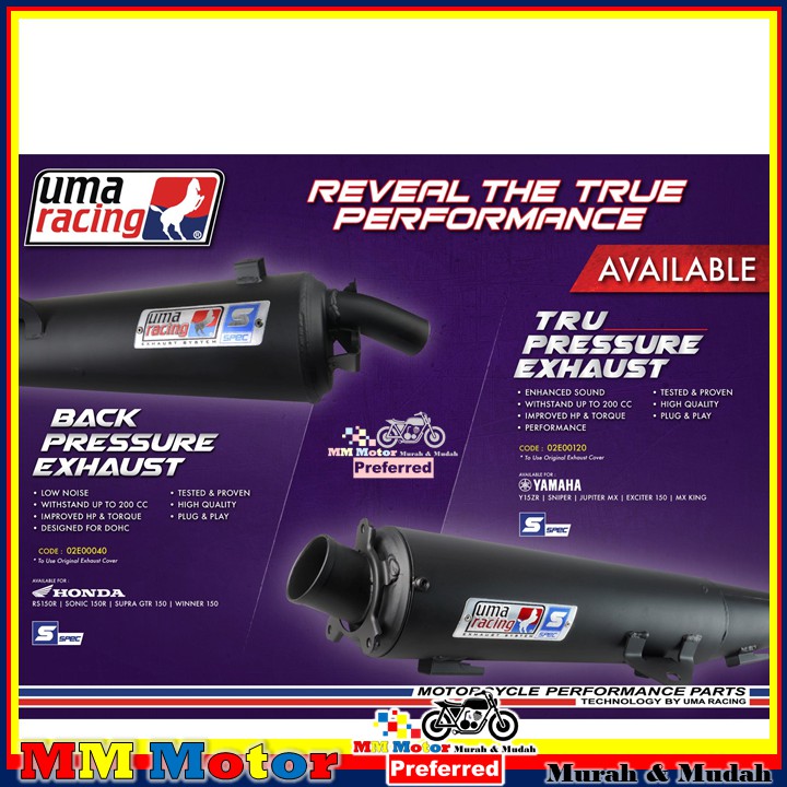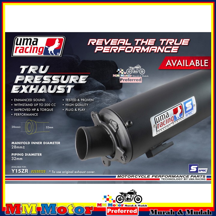 UMA RACING BACK PRESSURE / TRU PRESSURE EXHAUST YAMAHA LC135 4S 5S Y15ZR HONDA RS150R PNP PLUG AND PLAY MMMOTOR