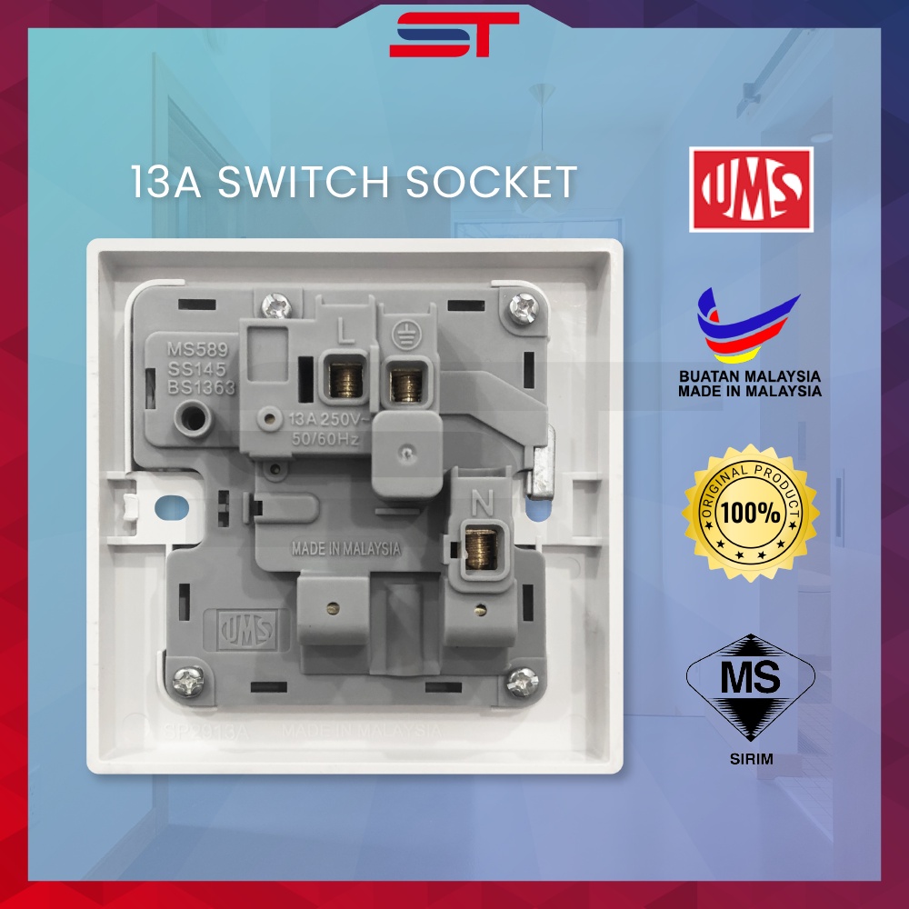 UMS 13A SWITCH SOCKET OUTLET / WALL SOCKET SWITCHES SIRIM APPROVED