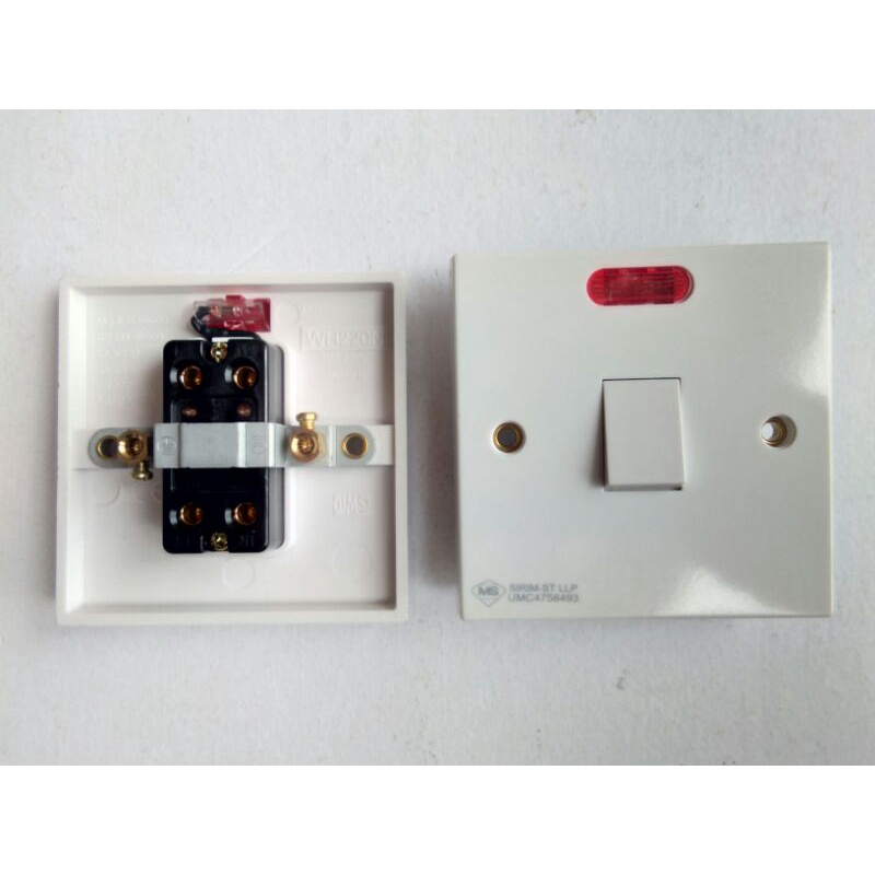 UMS 20A 250V AC DP Flush Switch With Neon Indicator Water Heater Switch WH220N / Suis Pemanas Air