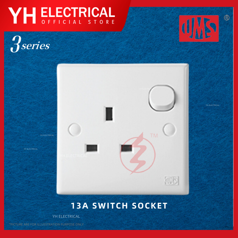 UMS 3 series Switches & Socket ( White ) 1gang 2gang 3gang 4gang 20A heater switch 15A switch socket