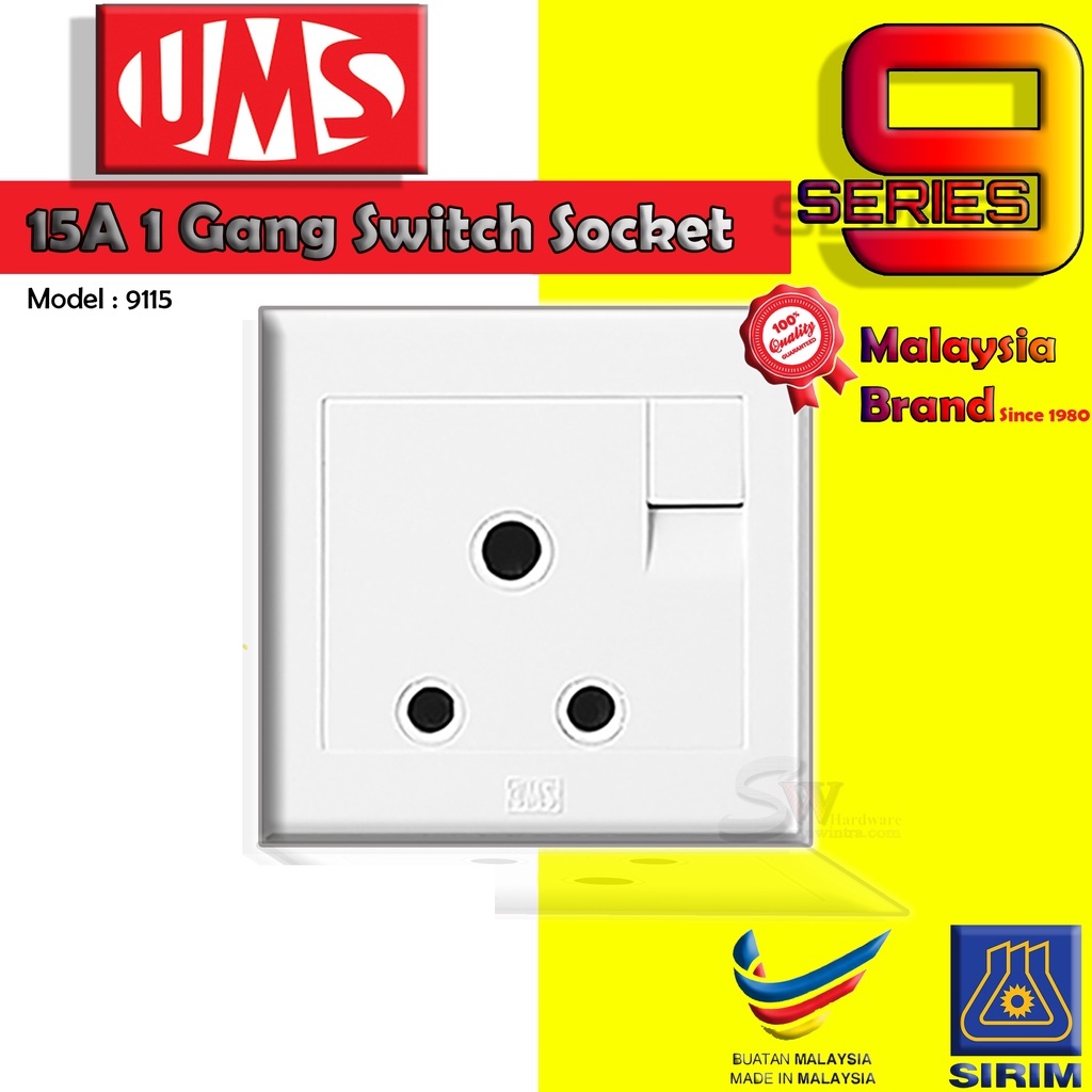 UMS 9 Series 9115 15A 1 Gang SP Switched Socket Outlet - 10 Pcs
