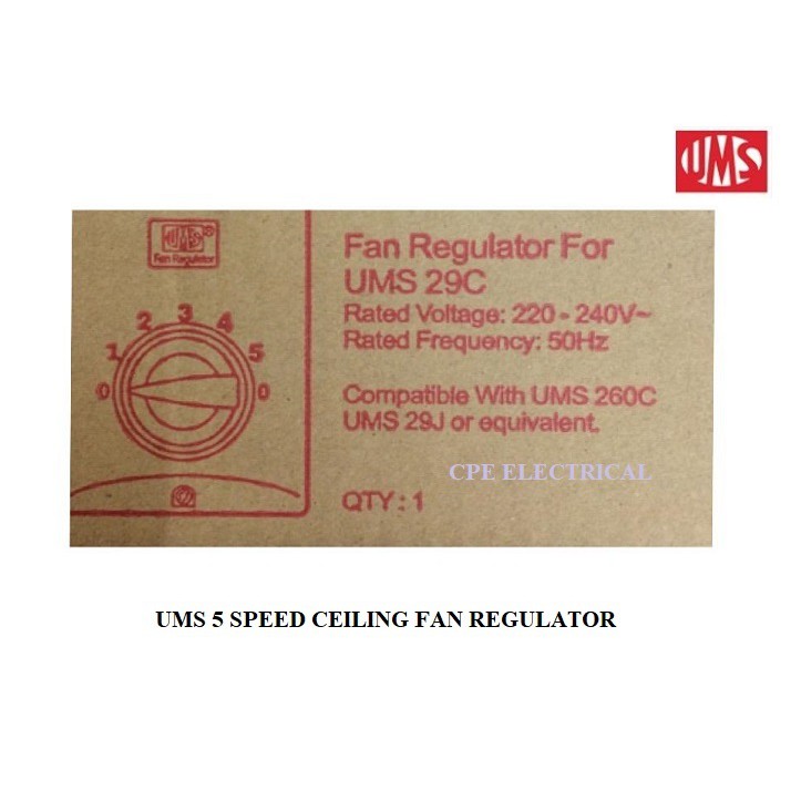UMS Fan Regulator Switch 5 Speed Control 29C 360
