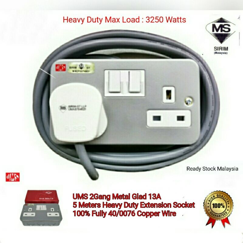 UMS Heavy Duty 13A Metal Clad 5Meters Extension Socket RM39.90