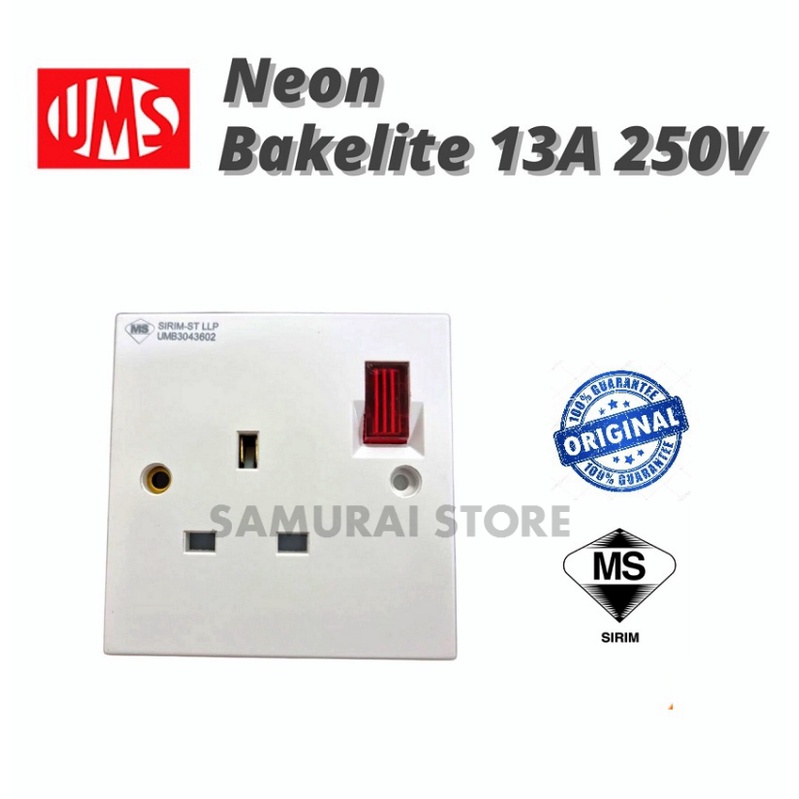 UMS NEON 13A Switched Socket Outlet With Neon Rocker 1213A-N