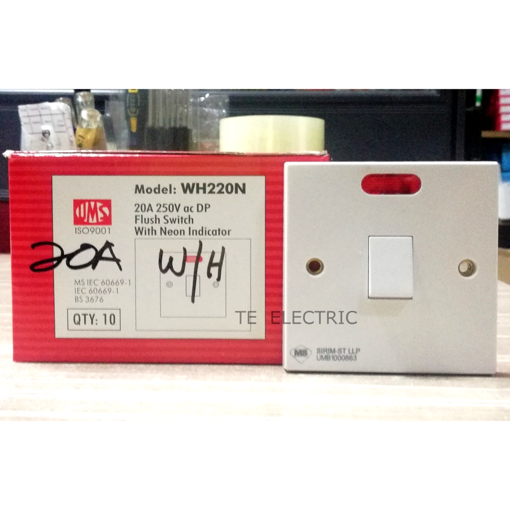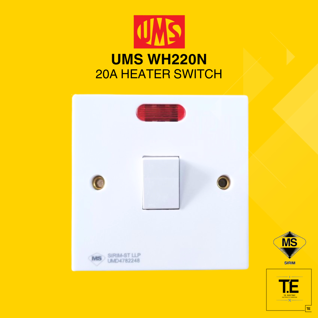 UMS WH220N 20A DOUBLE POLE WATER HEATER SWITCH WITH NEON INDICATOR UMS 20A 250V AIR COND SWITCH WITH NEON