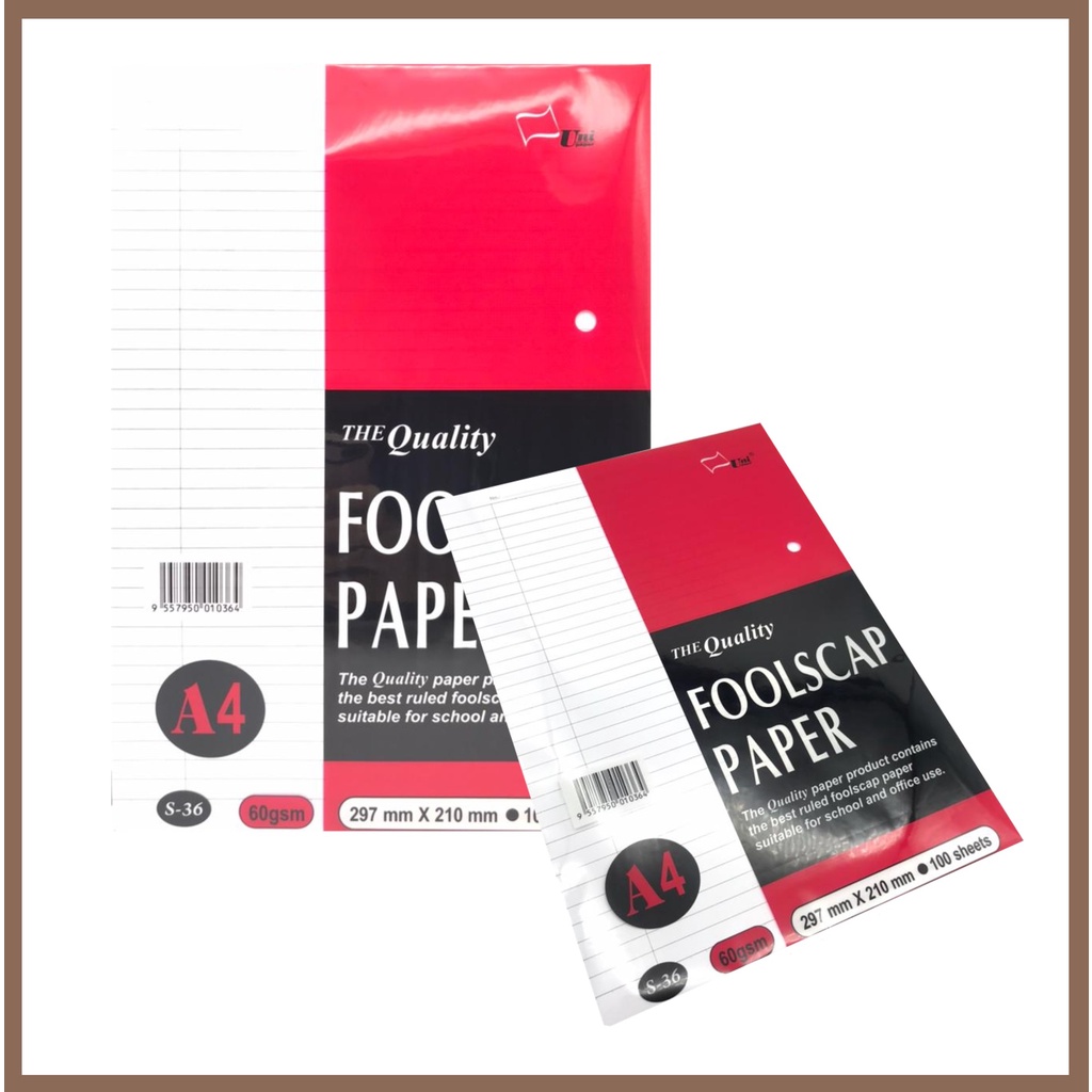 UNI PAPER TEST PAD FOOLSCAP A4 SIZE N/L [S36/ S37/ S38/ S39] 60GSM/ 70GSM/ 80GSM