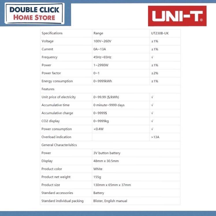 UNI-T UT230B Plug-in LCD Power Meter Wattmeter Frequency Cost Energy Monitor