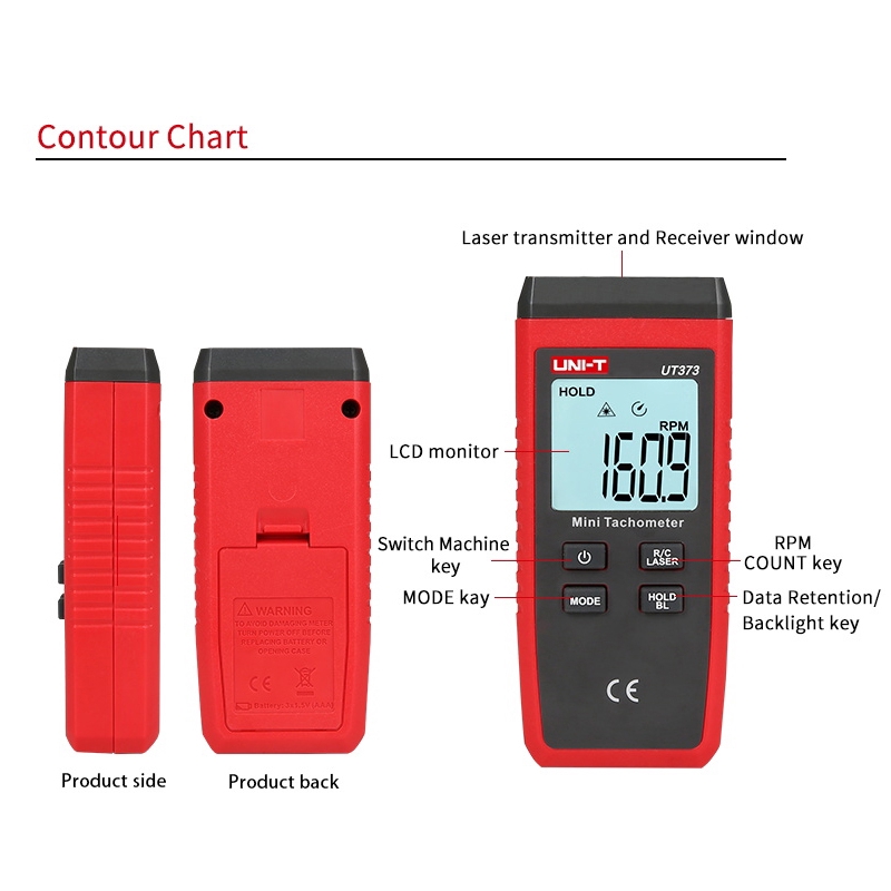 UNI-T UT373 Digital Mini Non-contact Laser Tachometer RPM Speed Tester