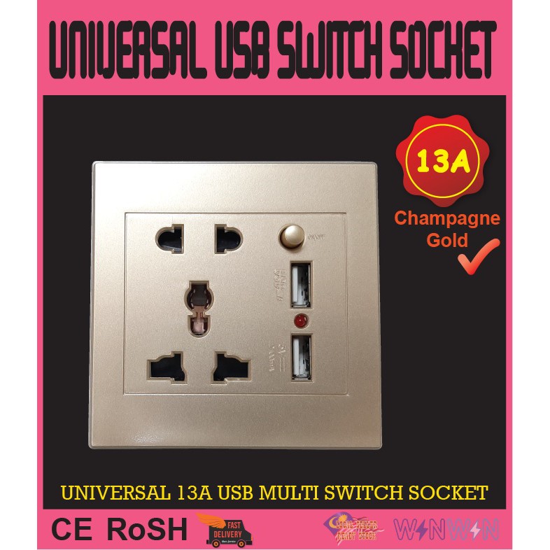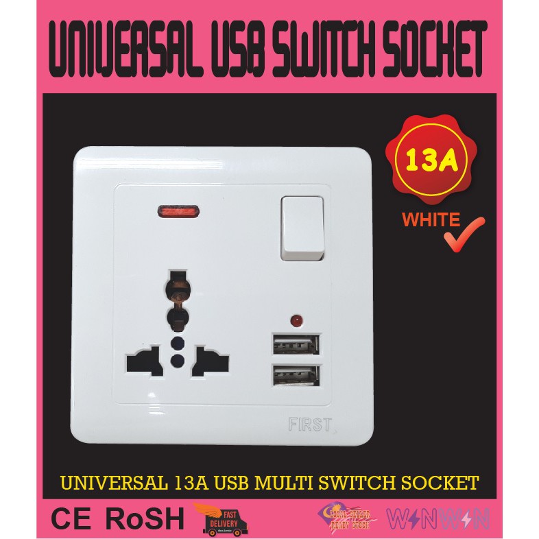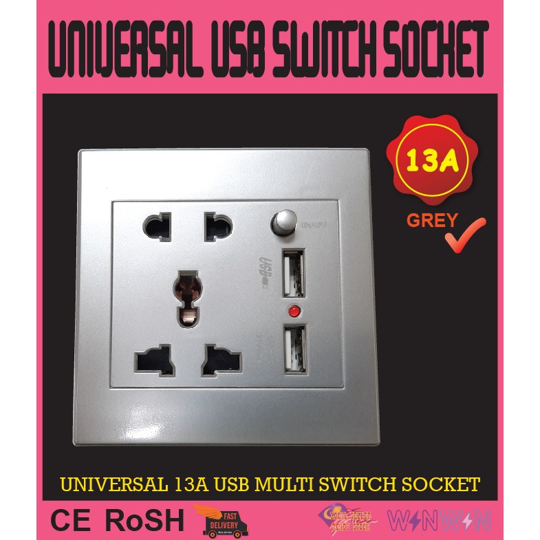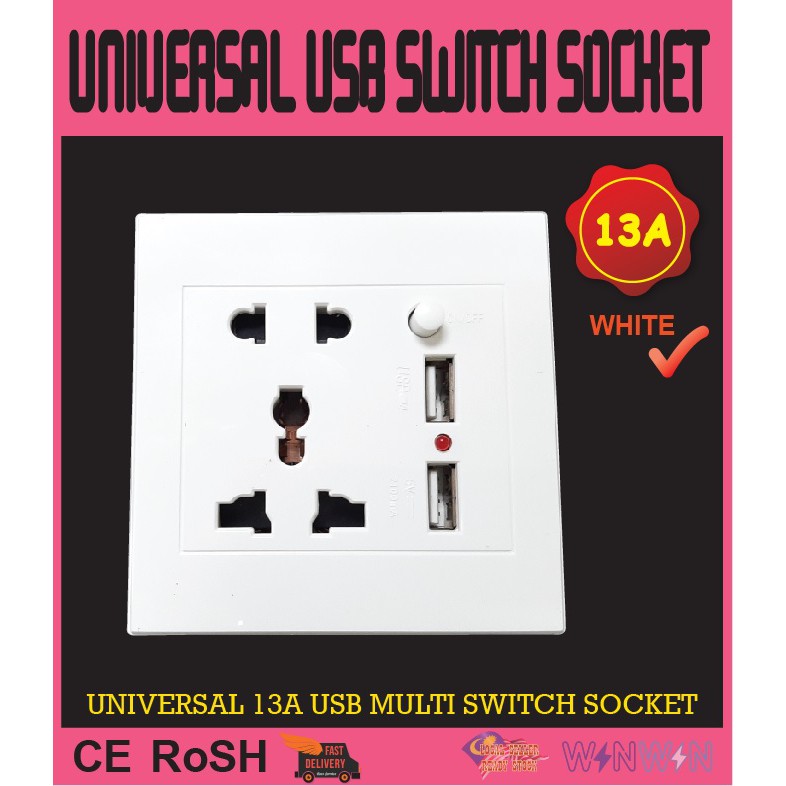 UNIVERSAL 13A USB MULTI FUNCTION SWITCH SOCKET 86 Size ELECTRIC WALL SOCKET