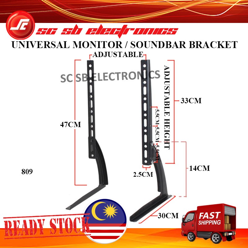 UNIVERSAL ADJUSTABLE MONITOR LCD LED PLASMA TV / SOUND BAR BRACKET - 809