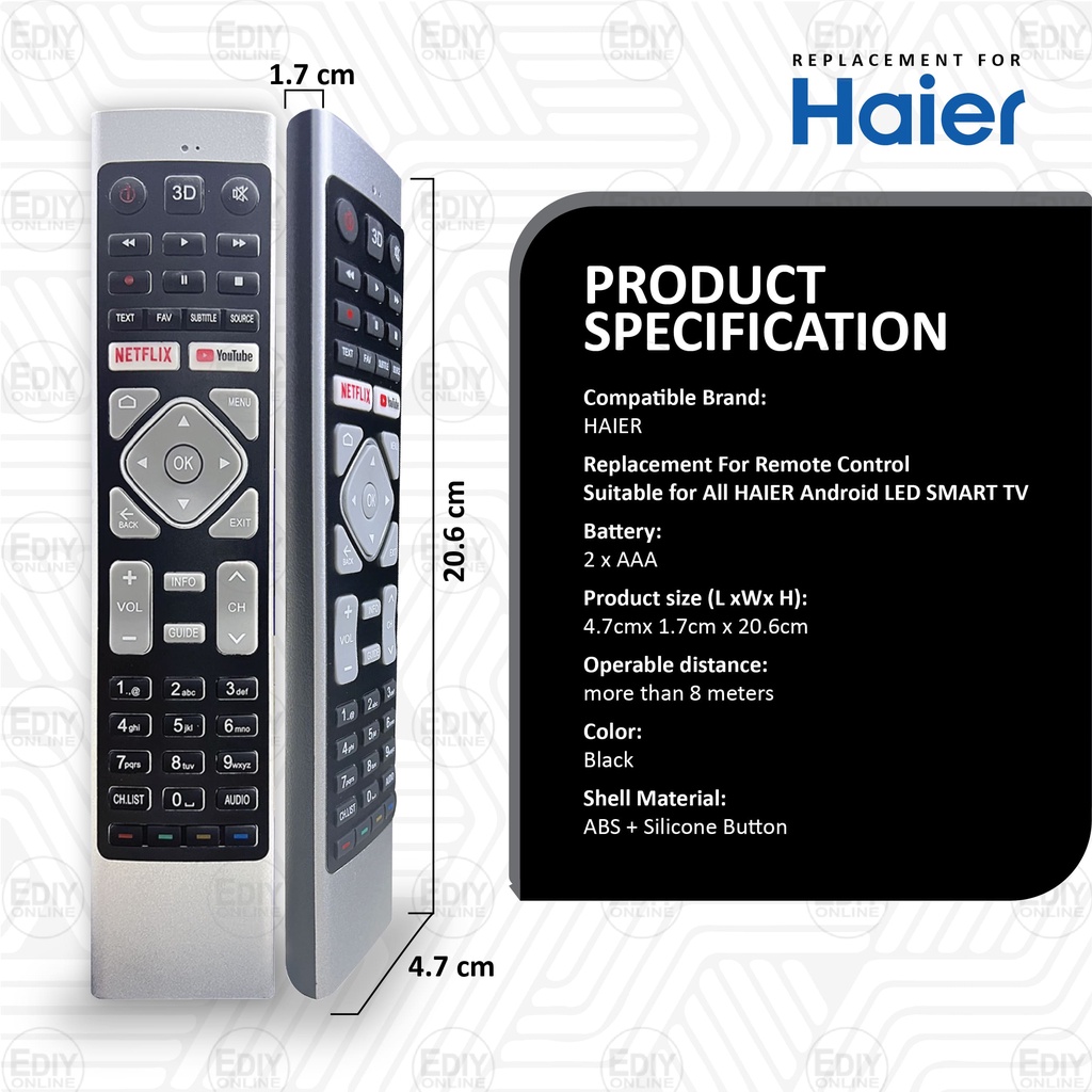 UNIVERSAL FOR HAIER HTR-U27A HTR-A27 HTR-U27E MT1 HTR-A10E HTR-A10 HTR-A18H HTR-A18E RM-L1656 REMOTE CONTROL SMART TV