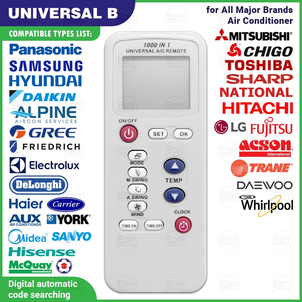 UNIVERSAL MULTI AIR COND AIRCOND CONDITIONER REMOTE CONTROL D@ikin HITACHI Daikini Yorks Acsons Daiking