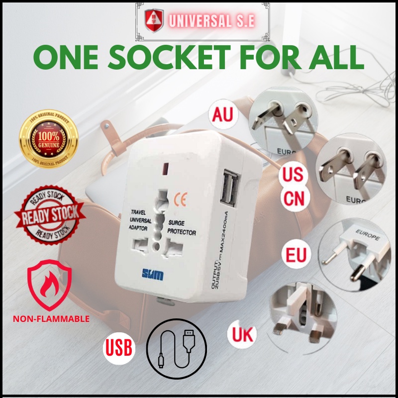 UNIVERSAL-SUM UNIVERSAL(SURGE PROTECTOR) TRAVELER PLUG ADAPTER,WORLDWIDE INTERNATIONAL power plug C/W USB CHARGER PORT
